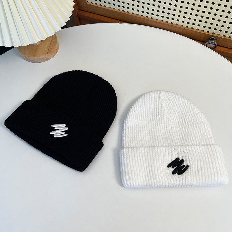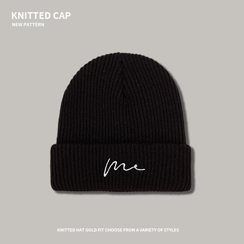 line knitted woolen cap-black