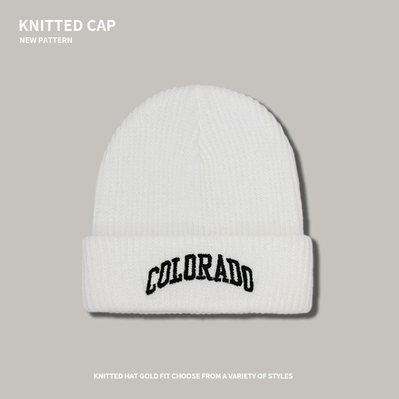 colo knitted woolen cap-white