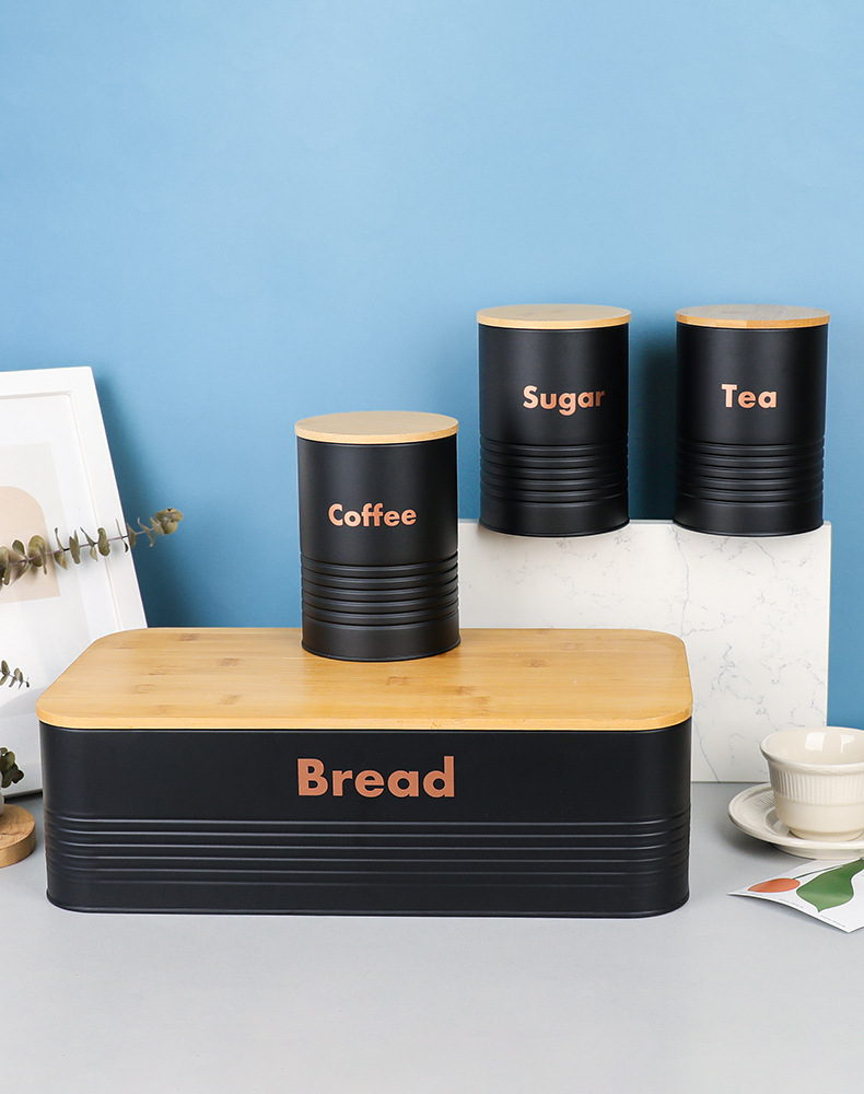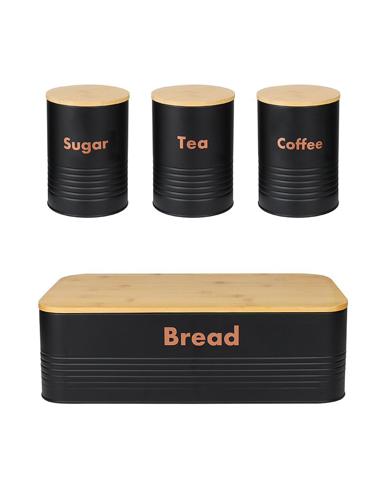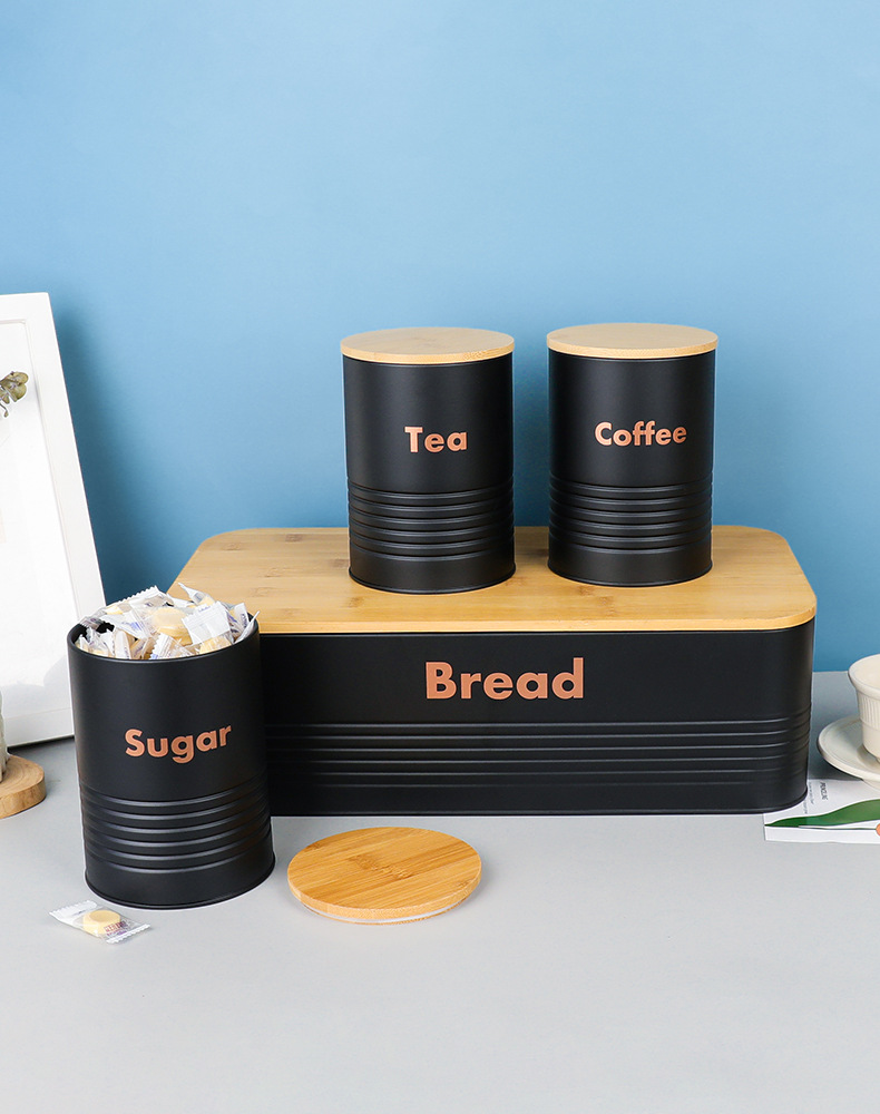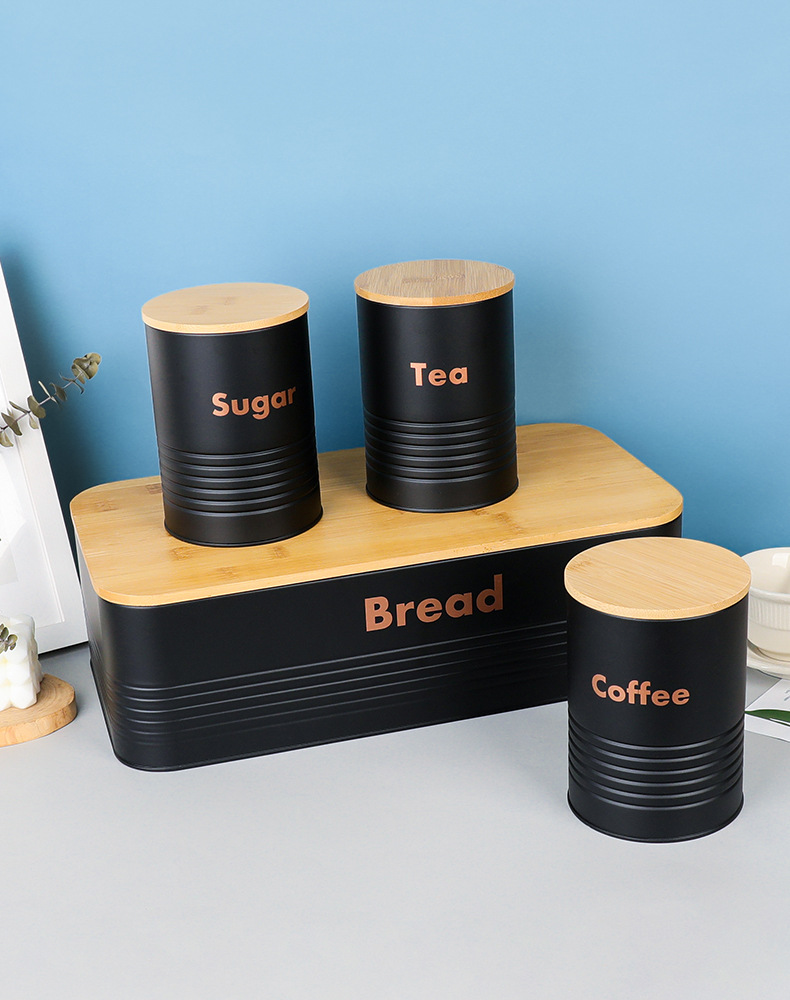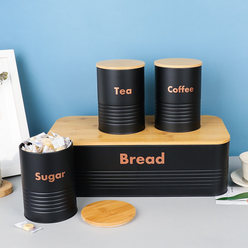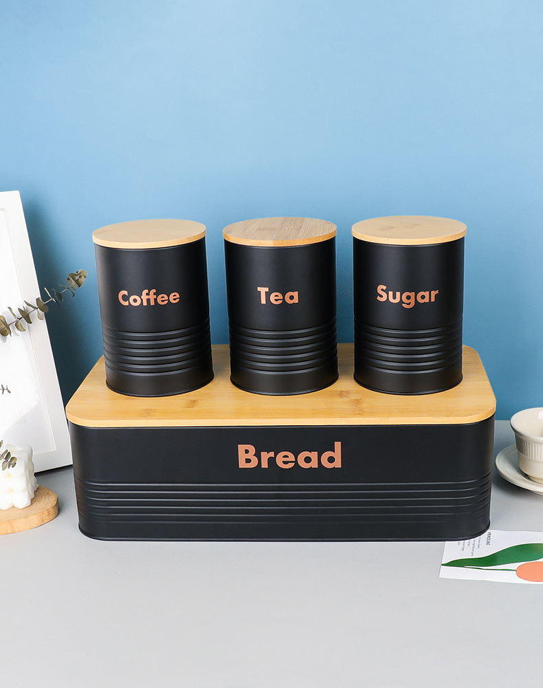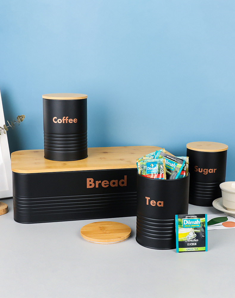 new striped bamboo cover four-piece galvanized iron coffee pot environmental protection storage box food storage entrance decoration storage 中文版