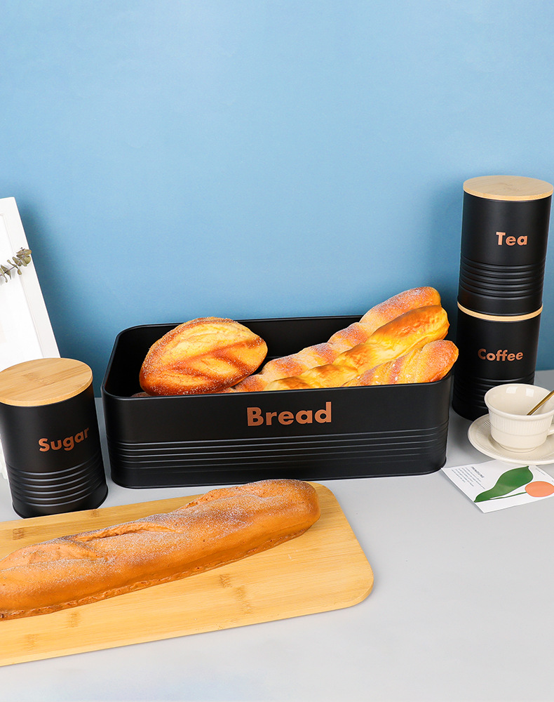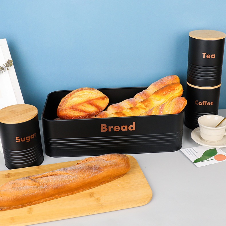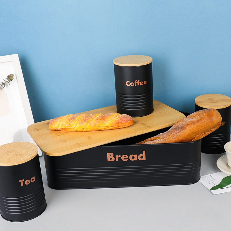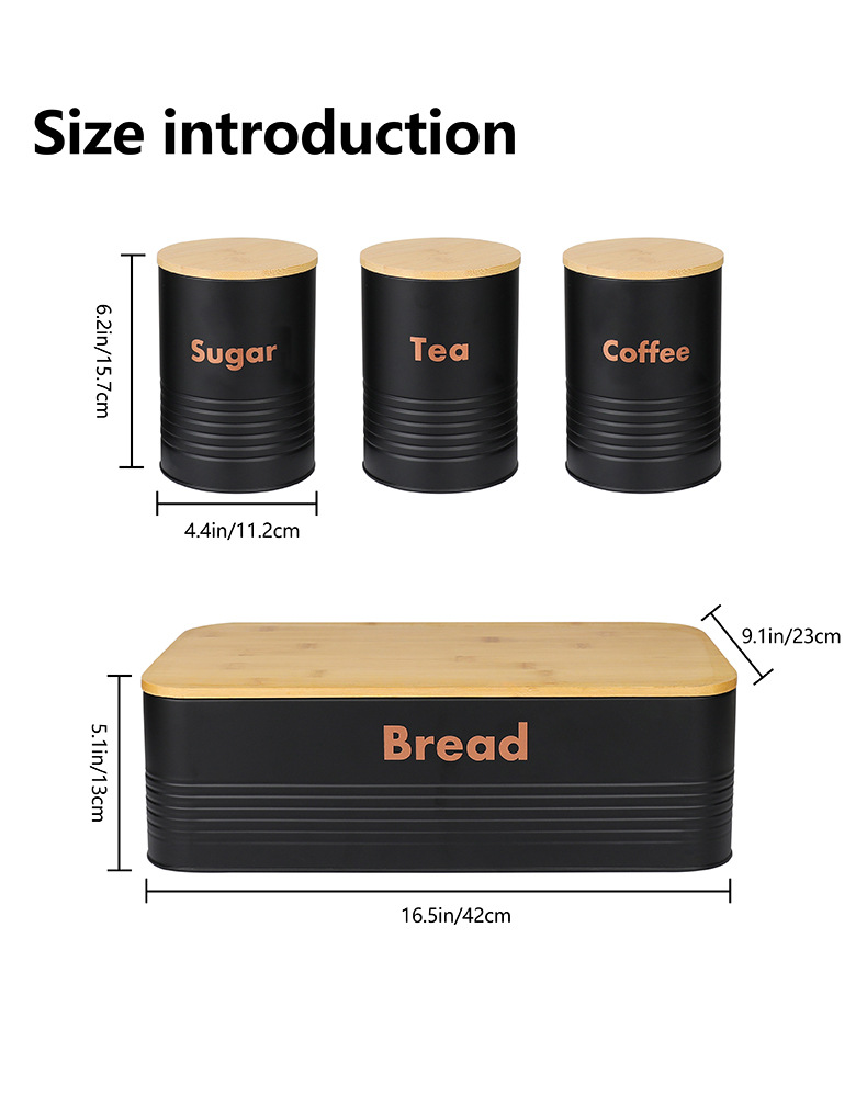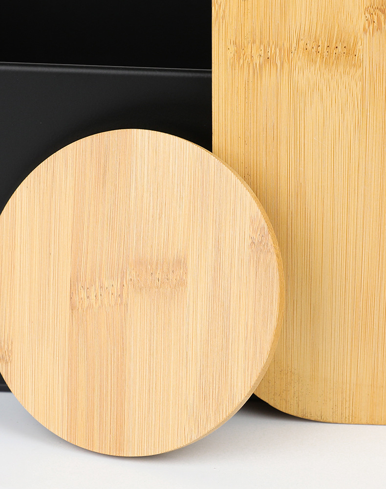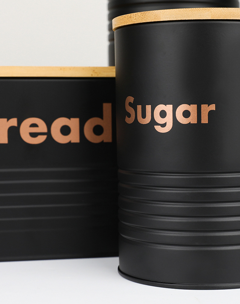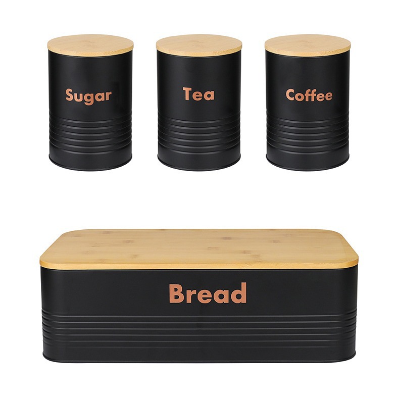 new striped bamboo cover four-piece galvanized iron coffee pot environmental protection storage box food storage entrance decoration storage 中文版