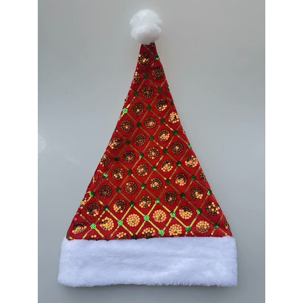 thickened christmas hat red plaid santa claus hat christmas decorations plush snowflake christmas hat