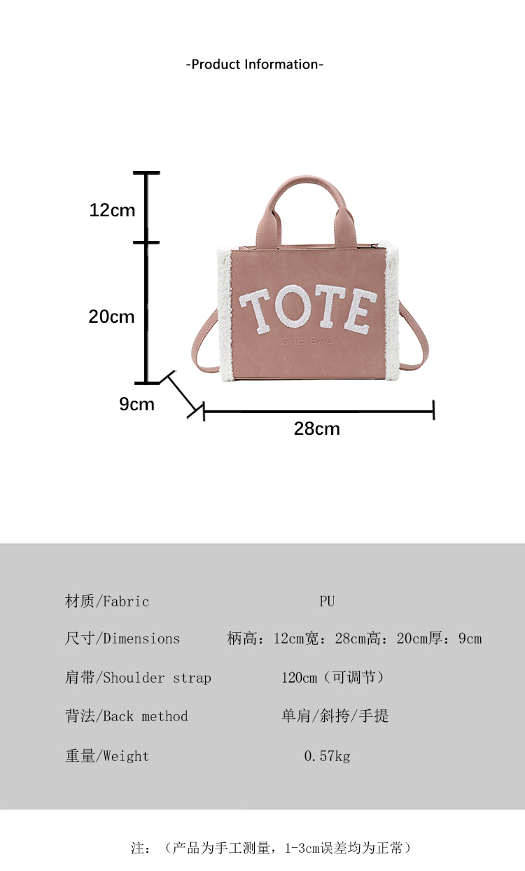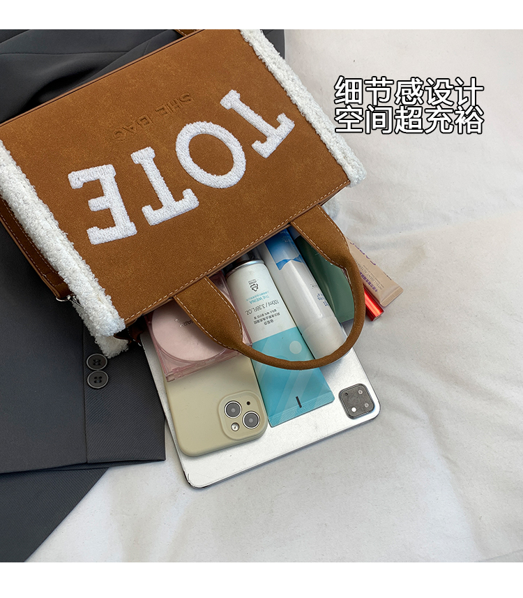 factory wholesale trendy women's bags fashion all-match plush stitching large capacity shoulder tote bag customizable logo 中文版
