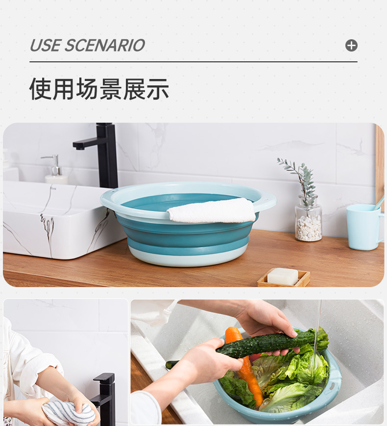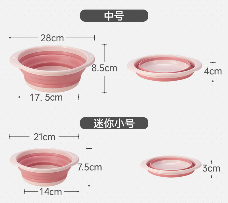 Large Folding Bowl: Diameter 35cm, Height: 10.5cm, Folding Height: 5cm, 80 pieces per box, Weight per piece: 330g naked, Outer box size: 64*37*67