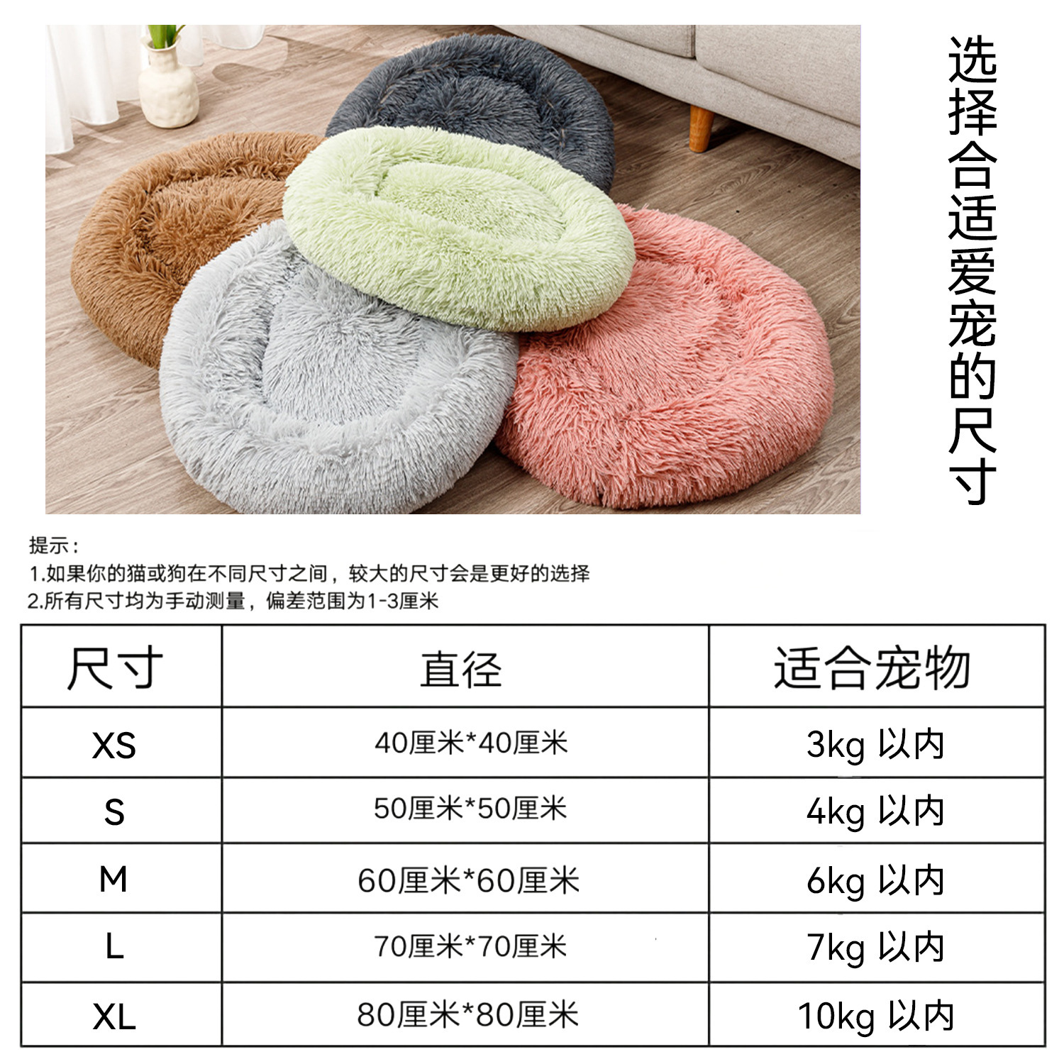 Chinese descriptionCats and dogs long fur round deep sleep warm pet bed pet supplies dog mat medium-sized dog