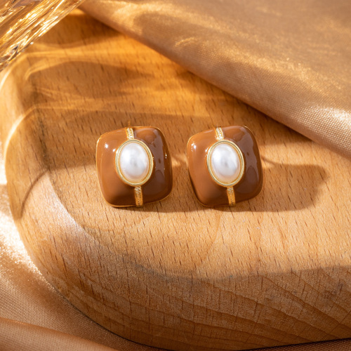french entry lux pearl square stud earrings hepburn style ins versatile exquisite high-grade earrings for women cross-border hot selling 中文版