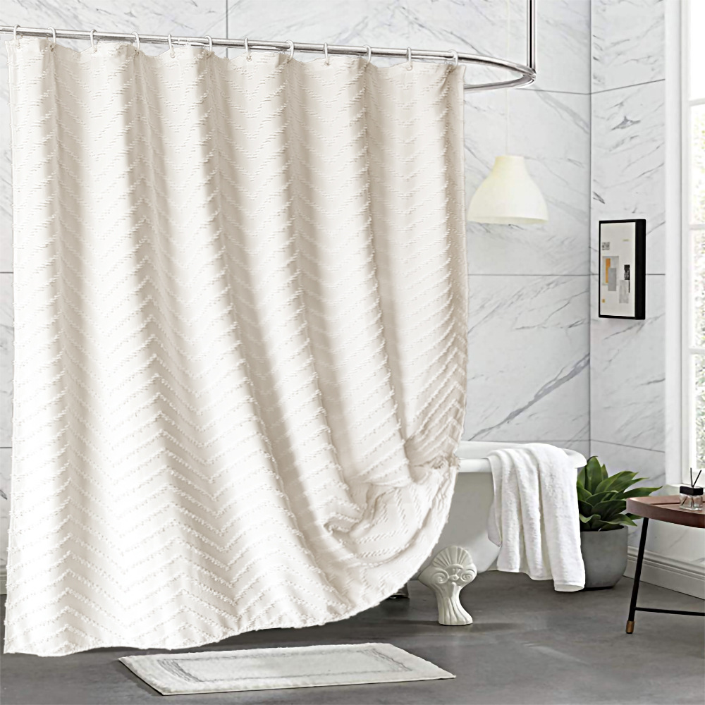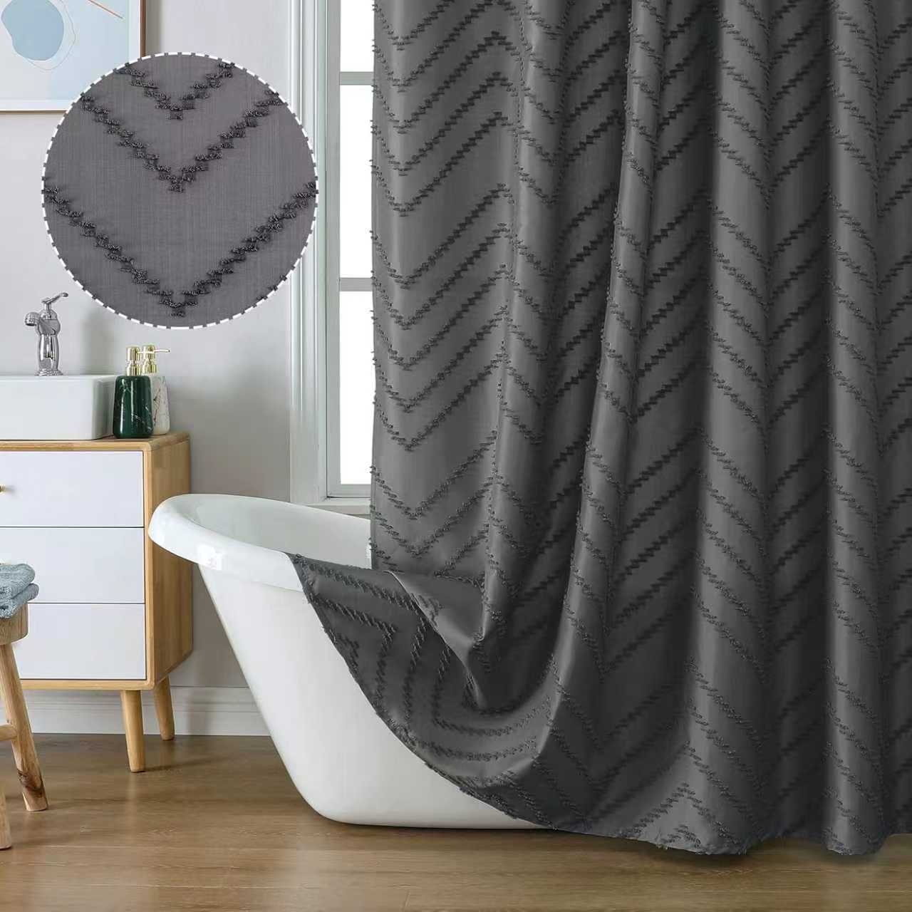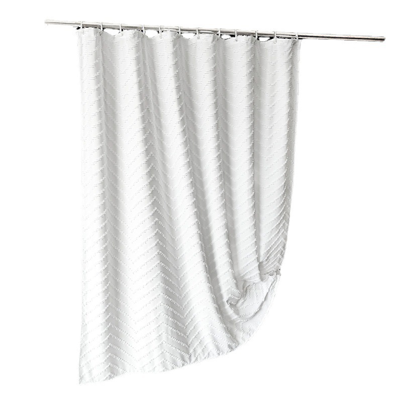 amazon hot solid color waterproof shower curtain w-type cut flower bathroom curtain peach skin fabric toilet partition curtain 中文版