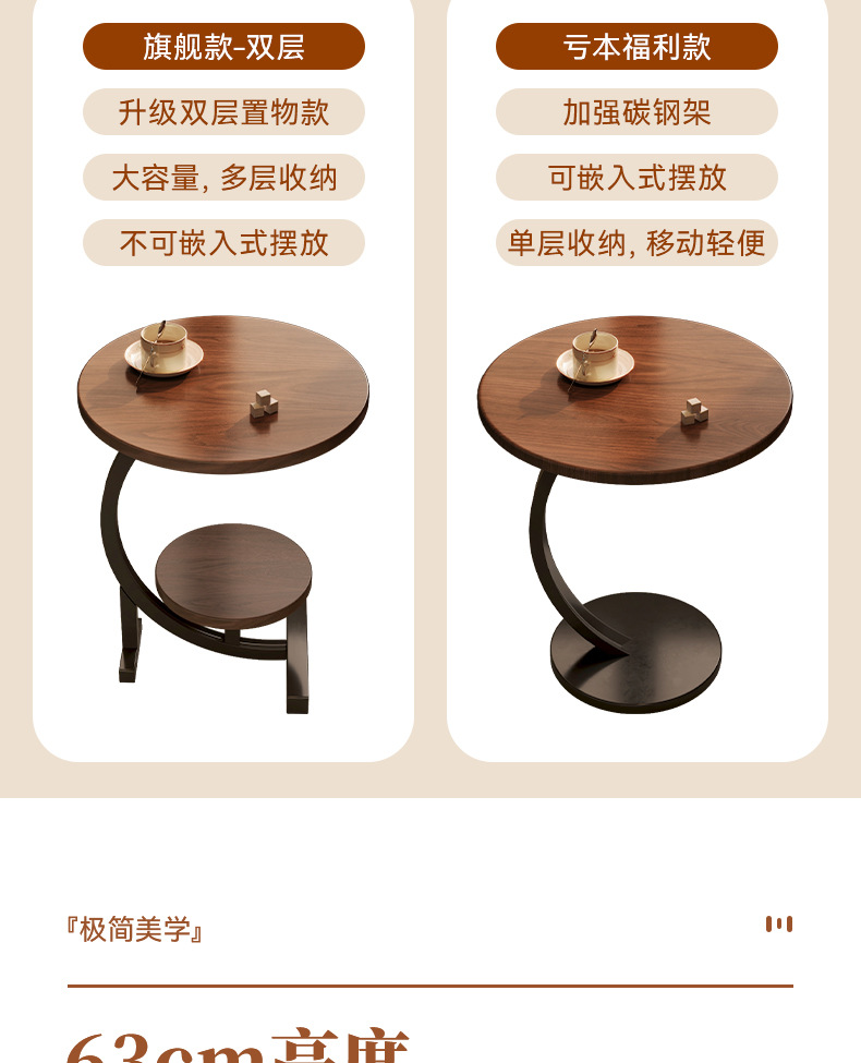 walnut side table small table coffee table sofa side cabinet with storage mobile small round table living room corner table 中文版