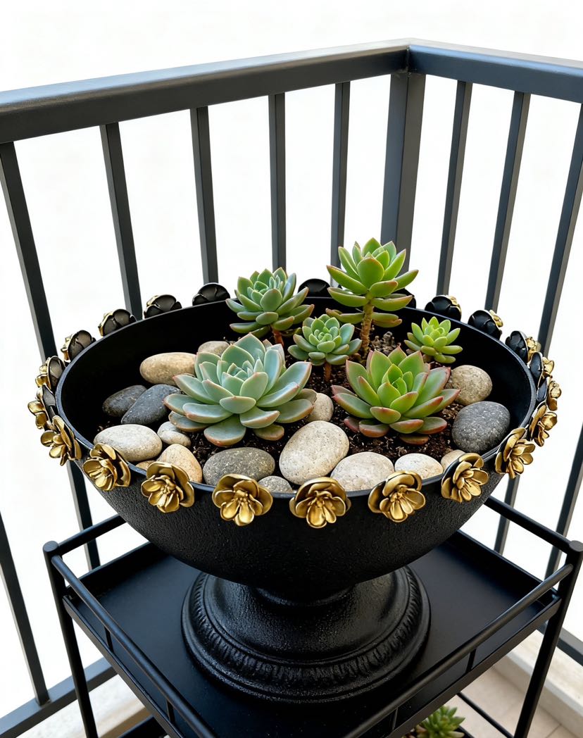 Here comes the elegant gold-painted rose iron pot with a sense of sophistication! The pot rim is decorated with three-dimensional rose gold decorations, giving it a retro and luxurious appearance. Adaptable to multiple scenes: it looks great when used to display fruits in the living room, to display fresh flowers in a flower shop, or as a pot for succulents on the balcony. Available in yellow/black/pink and other colors, it fits different soft decoration styles. The iron material is strong and durable, making it a good home decoration that combines beauty and practicality.