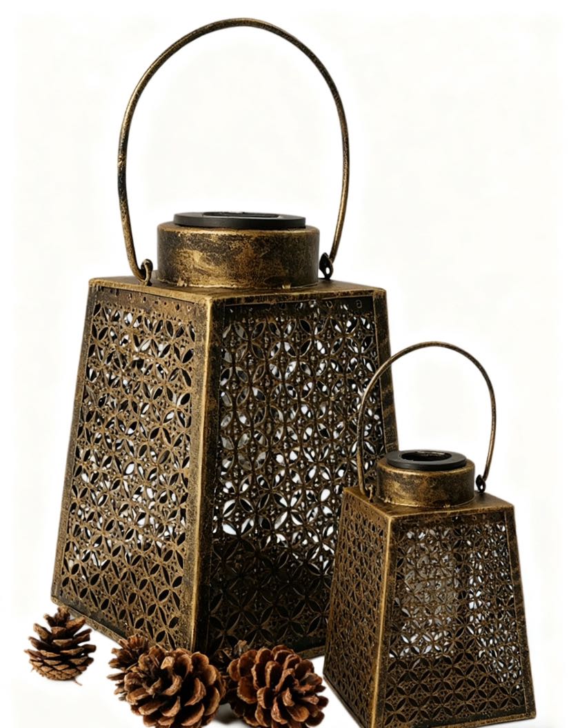 The retro-themed iron solar lamp is here! Available in sets of two, the lamp body features exquisite flower and leaf lattice patterns. Choose from yellow brass, silver gray, or dark green and more colors. It charges during the day by the sun and automatically lights up at night, with the soft light passing through the lattice. Perfect for decorating the corner of the courtyard, as a mood lamp on the balcony table, or as a soft decoration piece on the living room cabinet. The iron art material is weather-resistant and durable, making it an essential tool for creating a mood without wiring.