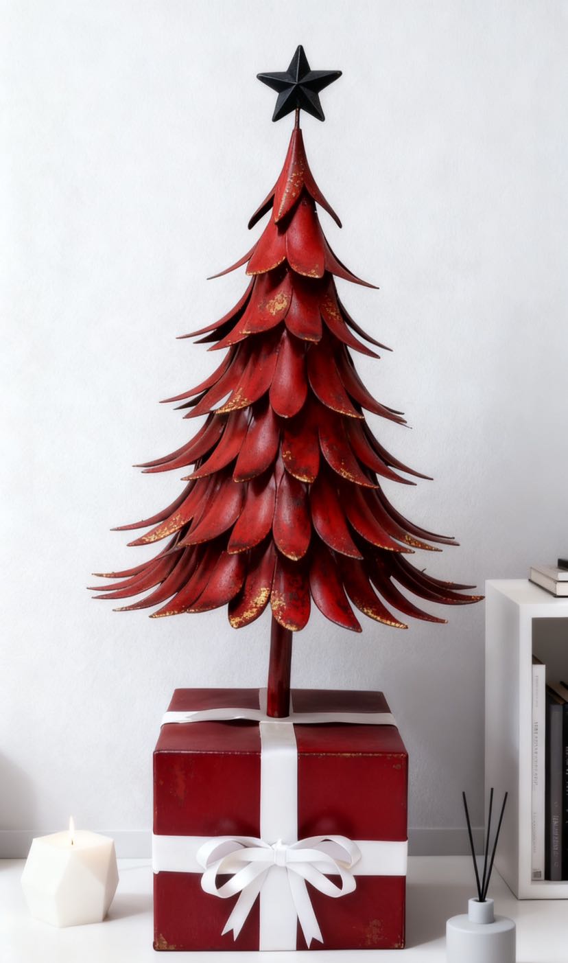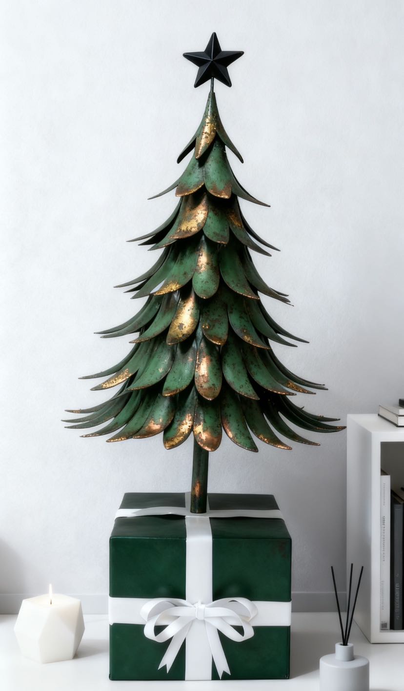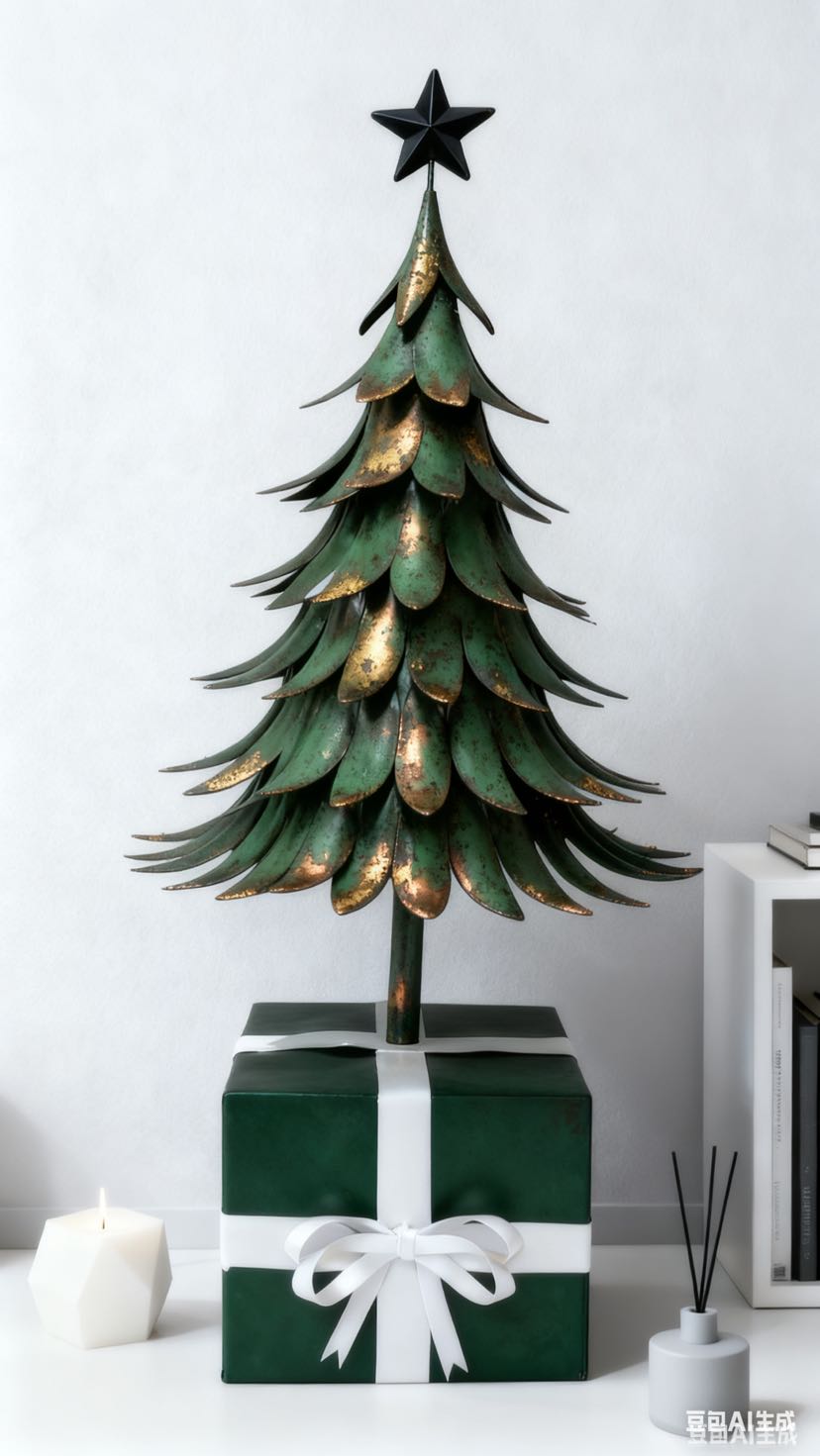 Here comes the iron art Christmas tree with an artistic touch! The tree body is in the shape of a three-dimensional leaf, with a brushed gold patina process, and is available in brown gold, cream white, and dark green, among other colors. The black pentagram at the top adds to the atmosphere. No maintenance is needed to fill the Christmas ritual sense: it can be used as soft decoration in the corner of the living room, as decoration on the entrance cabinet, or as a decoration on the desk. The iron art material is strong and durable, making it a high-quality decoration that can be displayed all year round.