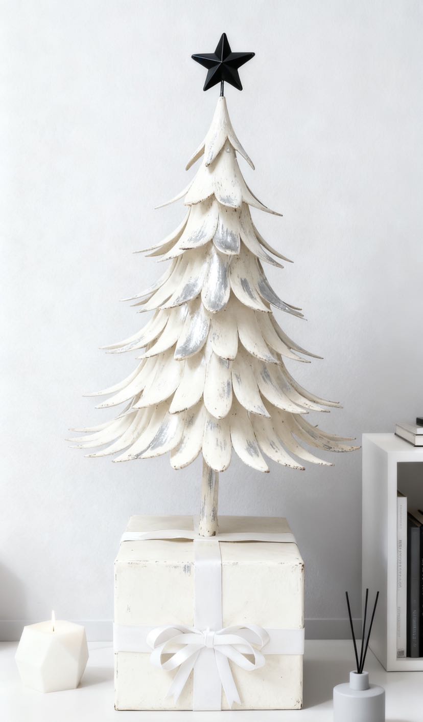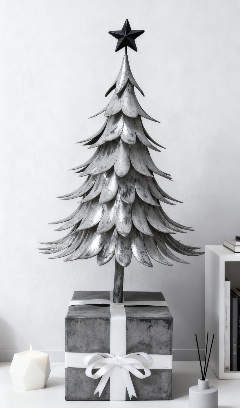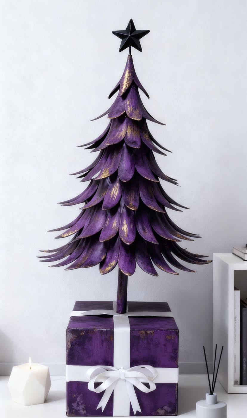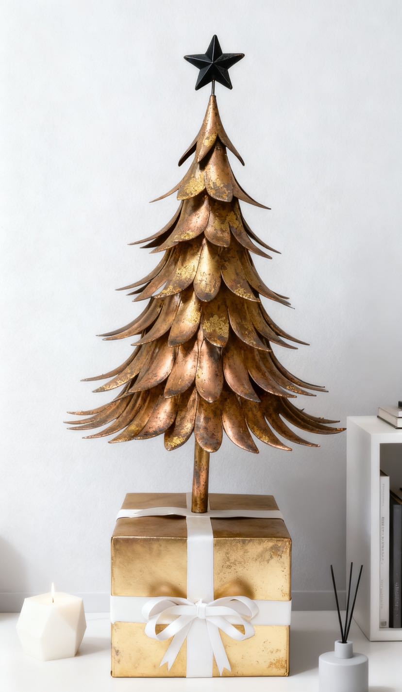 Here comes the iron art Christmas tree with an artistic touch! The tree body is in the shape of a three-dimensional leaf, with a brushed gold patina process, and is available in brown gold, cream white, and dark green, among other colors. The black pentagram at the top adds to the atmosphere. No maintenance is needed to fill the Christmas ritual sense: it can be used as soft decoration in the corner of the living room, as decoration on the entrance cabinet, or as a decoration on the desk. The iron art material is strong and durable, making it a high-quality decoration that can be displayed all year round.