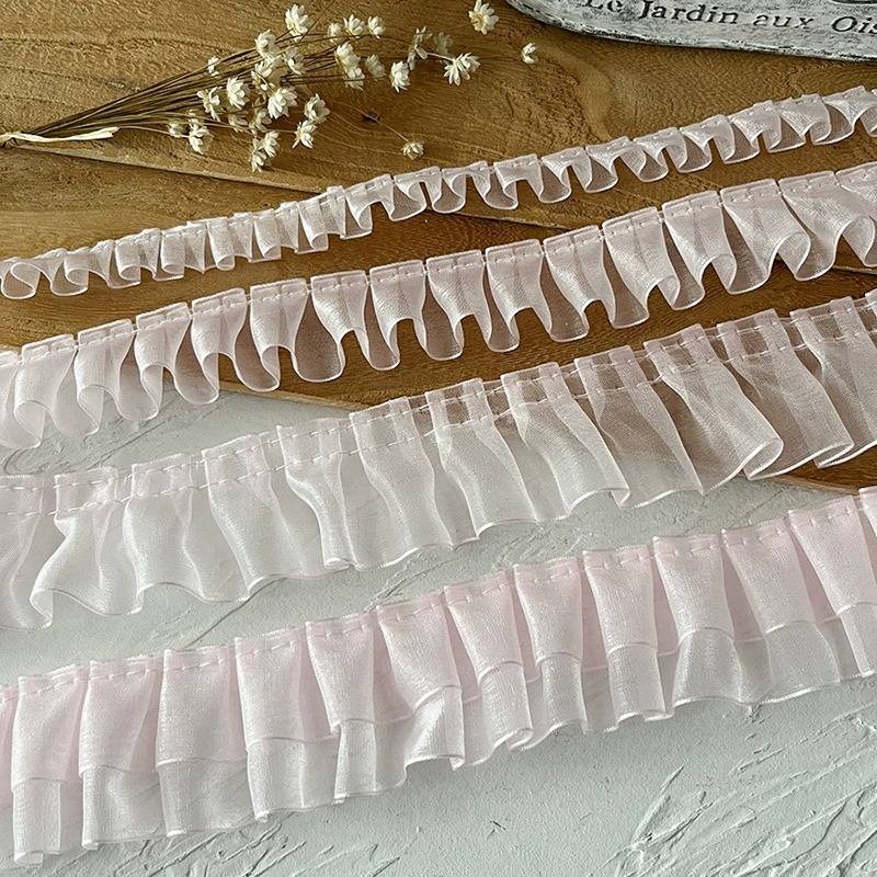 no. 17 length 1 m white chiffon width about 3cm single layer hook pink edge
