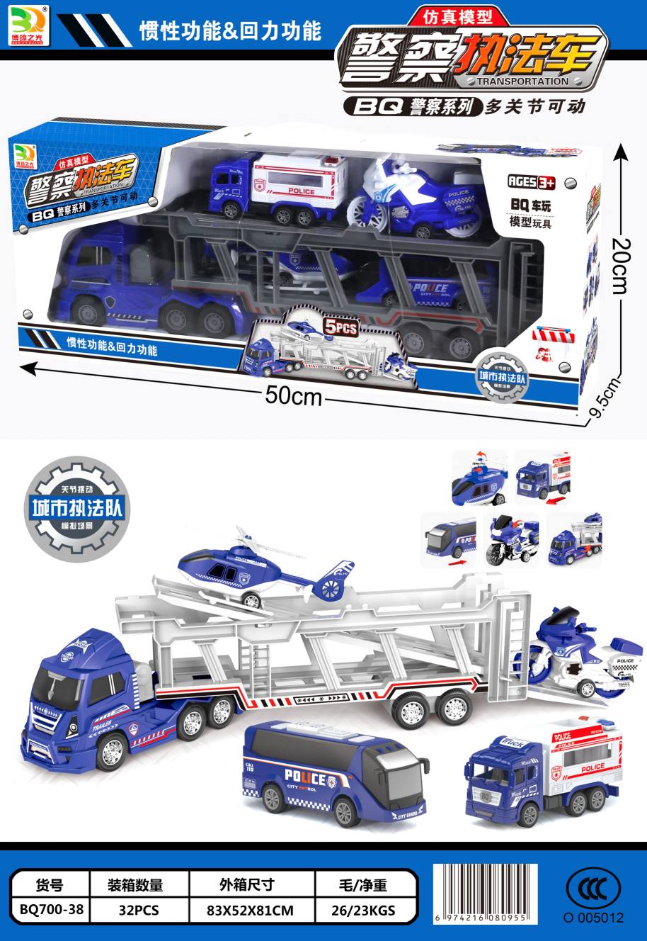 police car trailer inertial vehicle + high quality warrior police car 4 bq700-38 (3c) 中文版