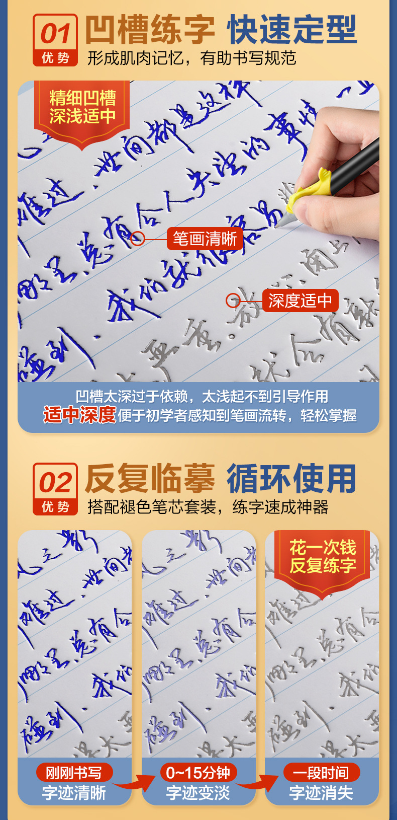 5 handwritten grooves +2 copies (1 pen, 1 grip, 10 refill)