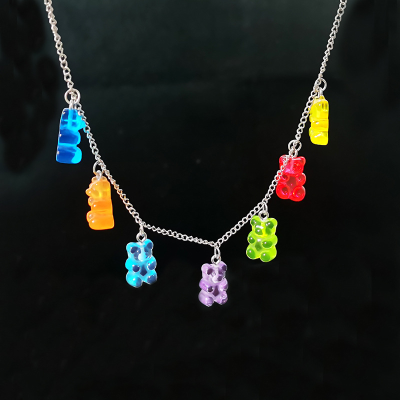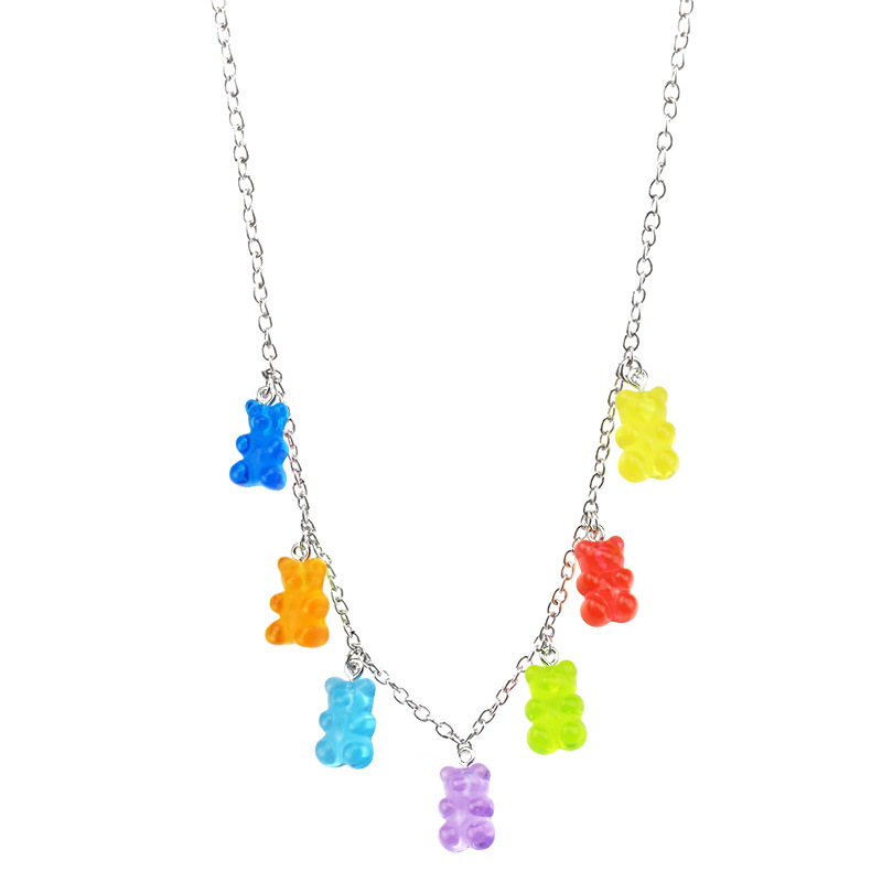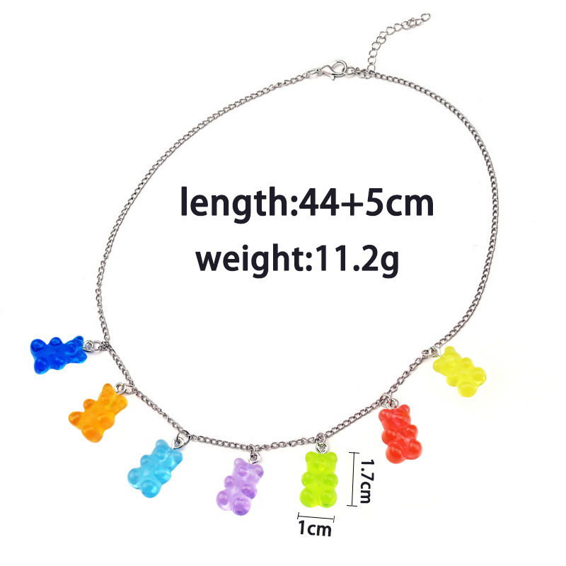 popular resin transparent candy color cartoon bear europe and america cross border hot-selling ornament necklace personality fashion sweater chain 中文版