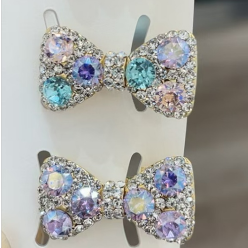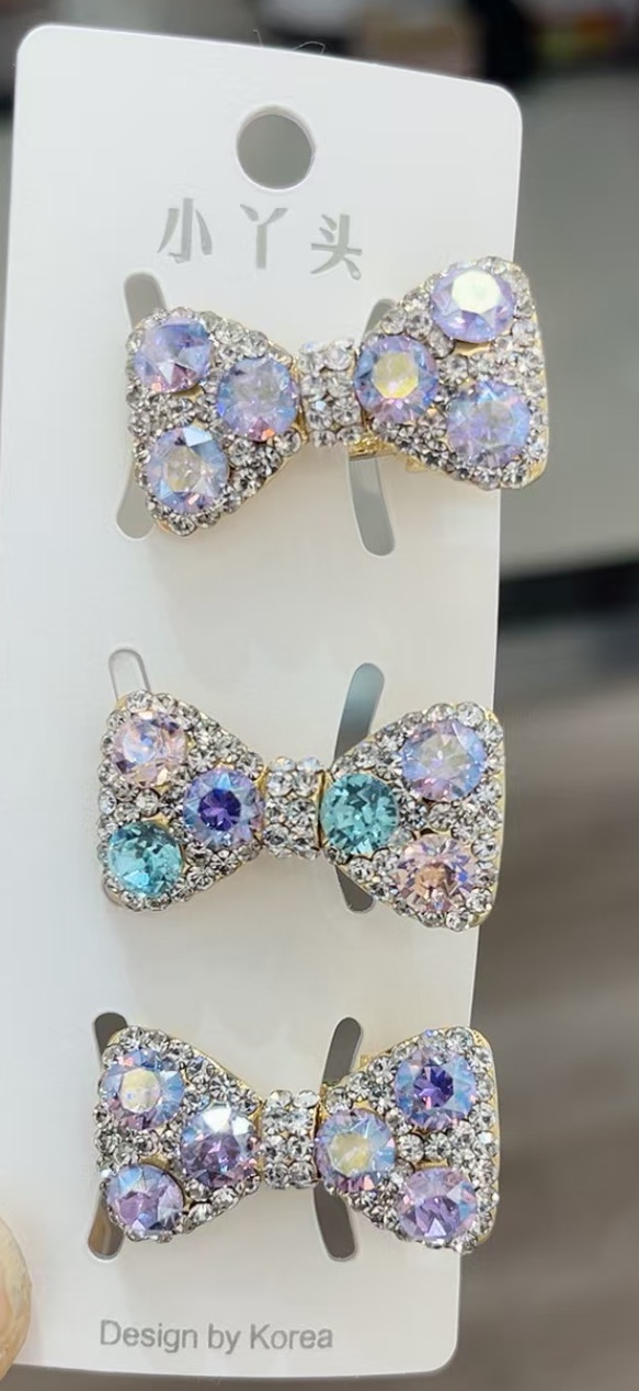 crystal alloy bow female hairpin cute children hairpin headdress hairwear side clip shiny crystal side clip 中文版