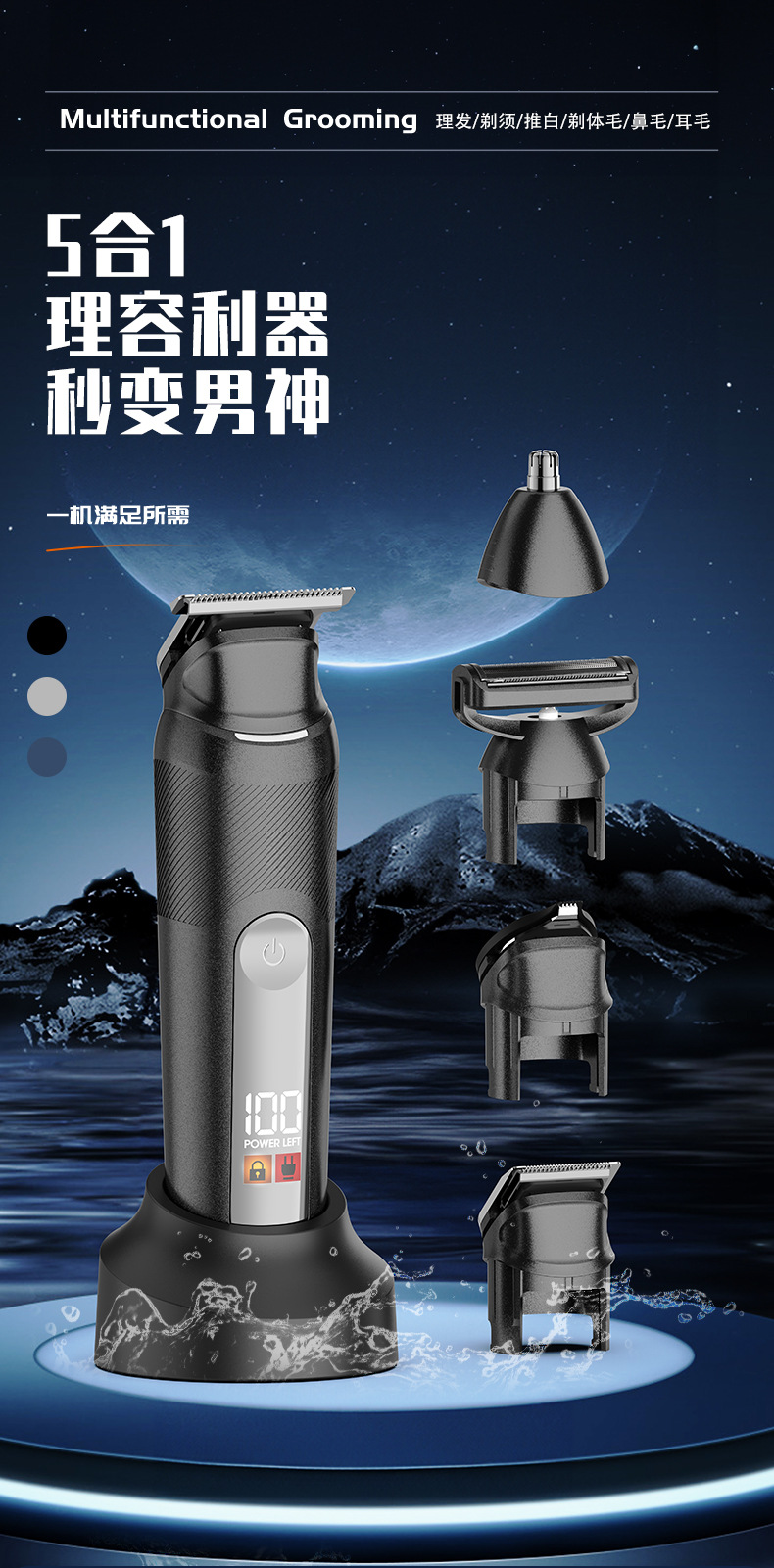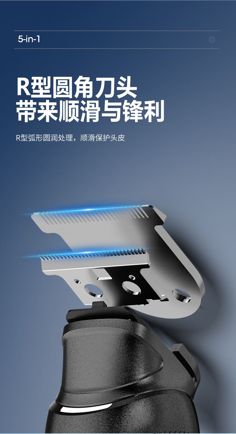 New-style clamp blade head, LED display: battery level display, low battery reminder, travel lock