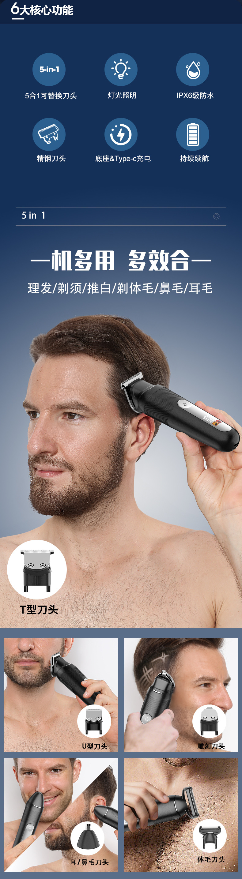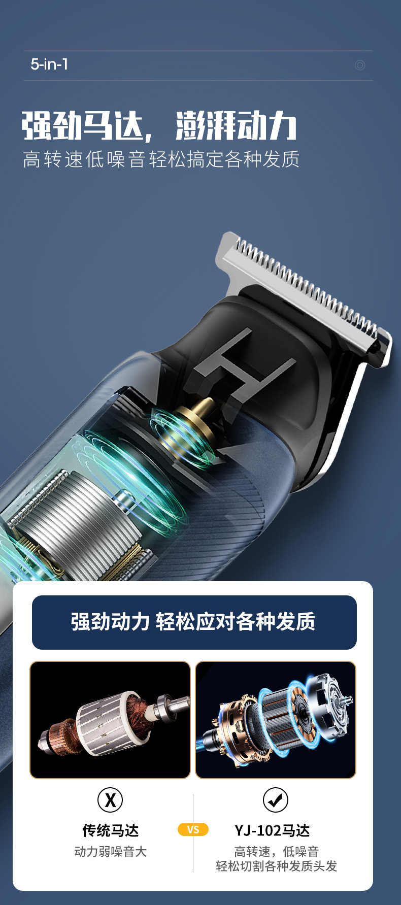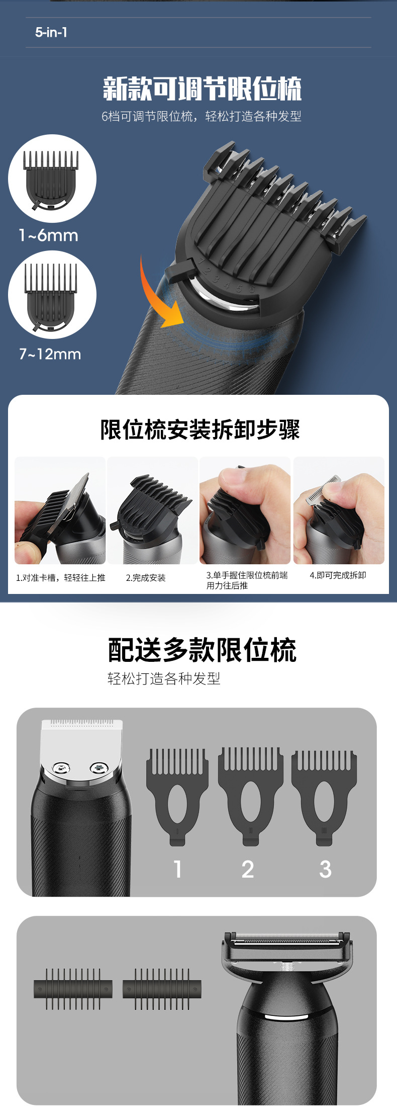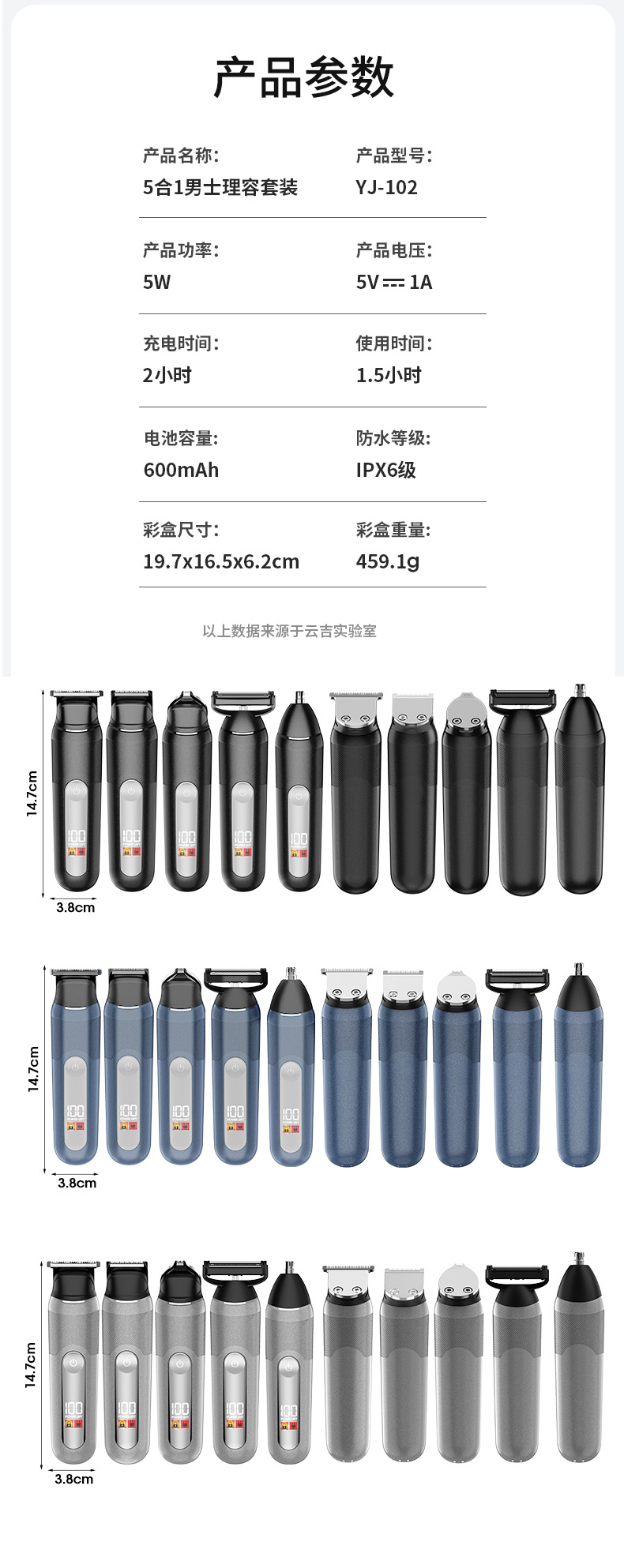 New-style clamp blade head, LED display: battery level display, low battery reminder, travel lock