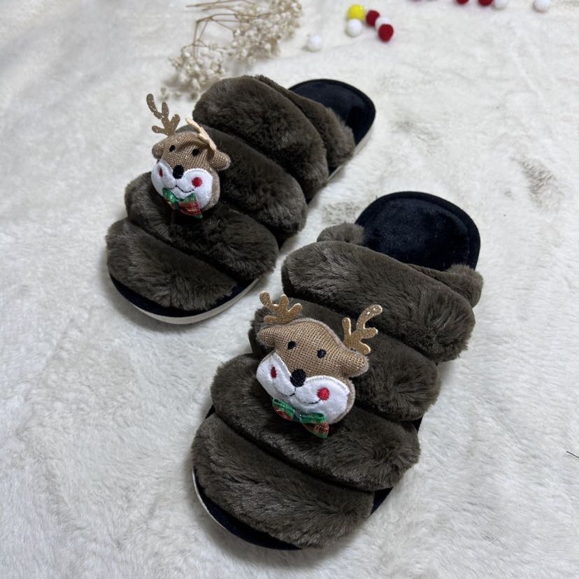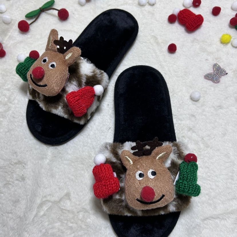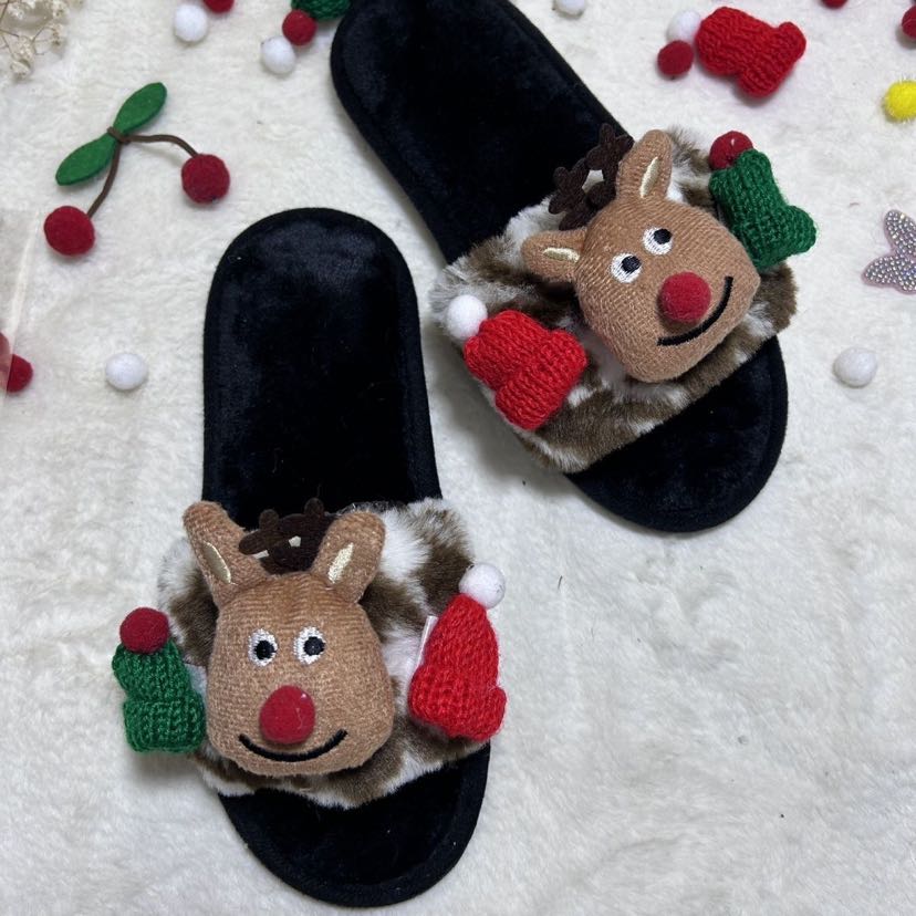 new christmas cotton slippers open closed toe floor slippers waterproof non-slip warm winter slippers 中文版
