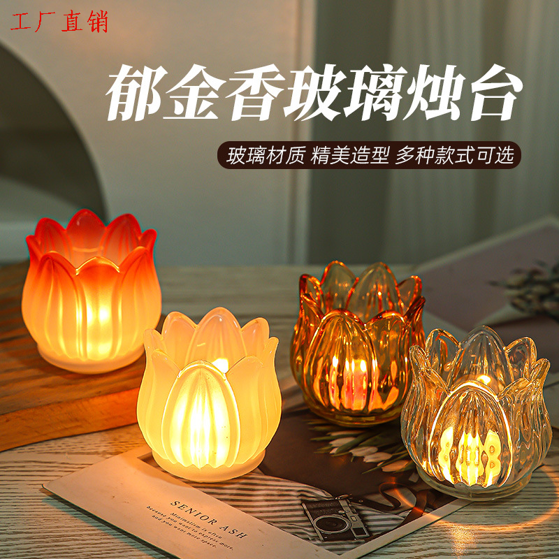 vintage glass candle cup hand blown unique texture candlelight dinner with candles 中文版