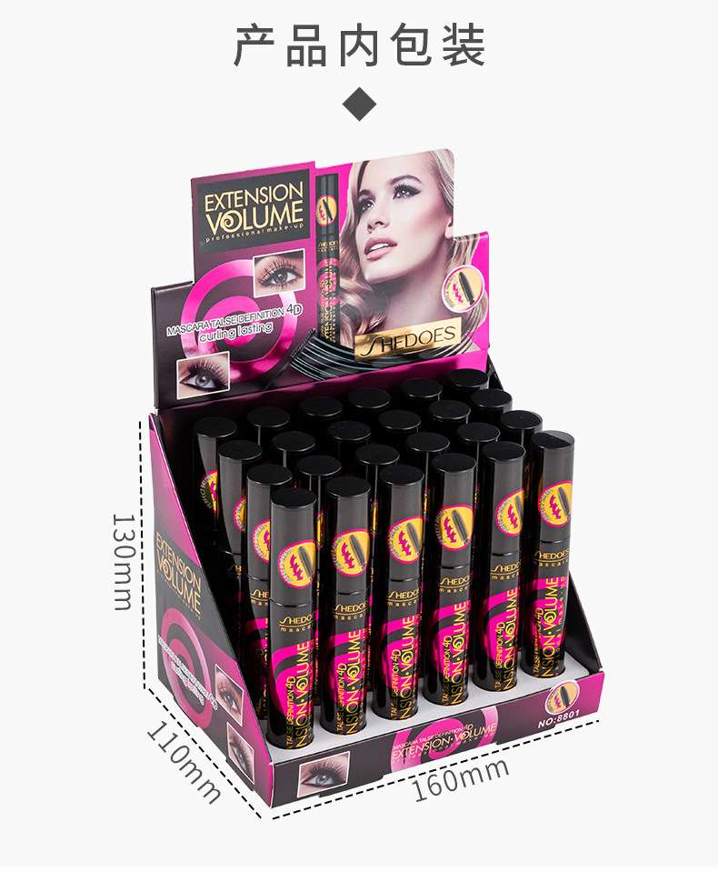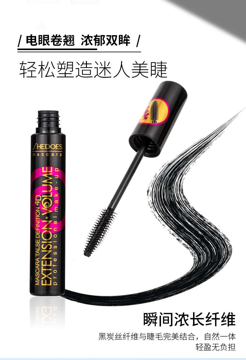 cross-border shedoes4d three-dimensional bamboo comb waterproof sweat-proof thick curl long non-dizzy dye easy makeup remover mascara 中文版
