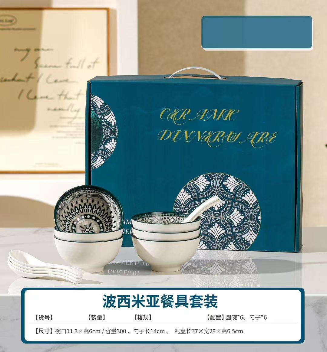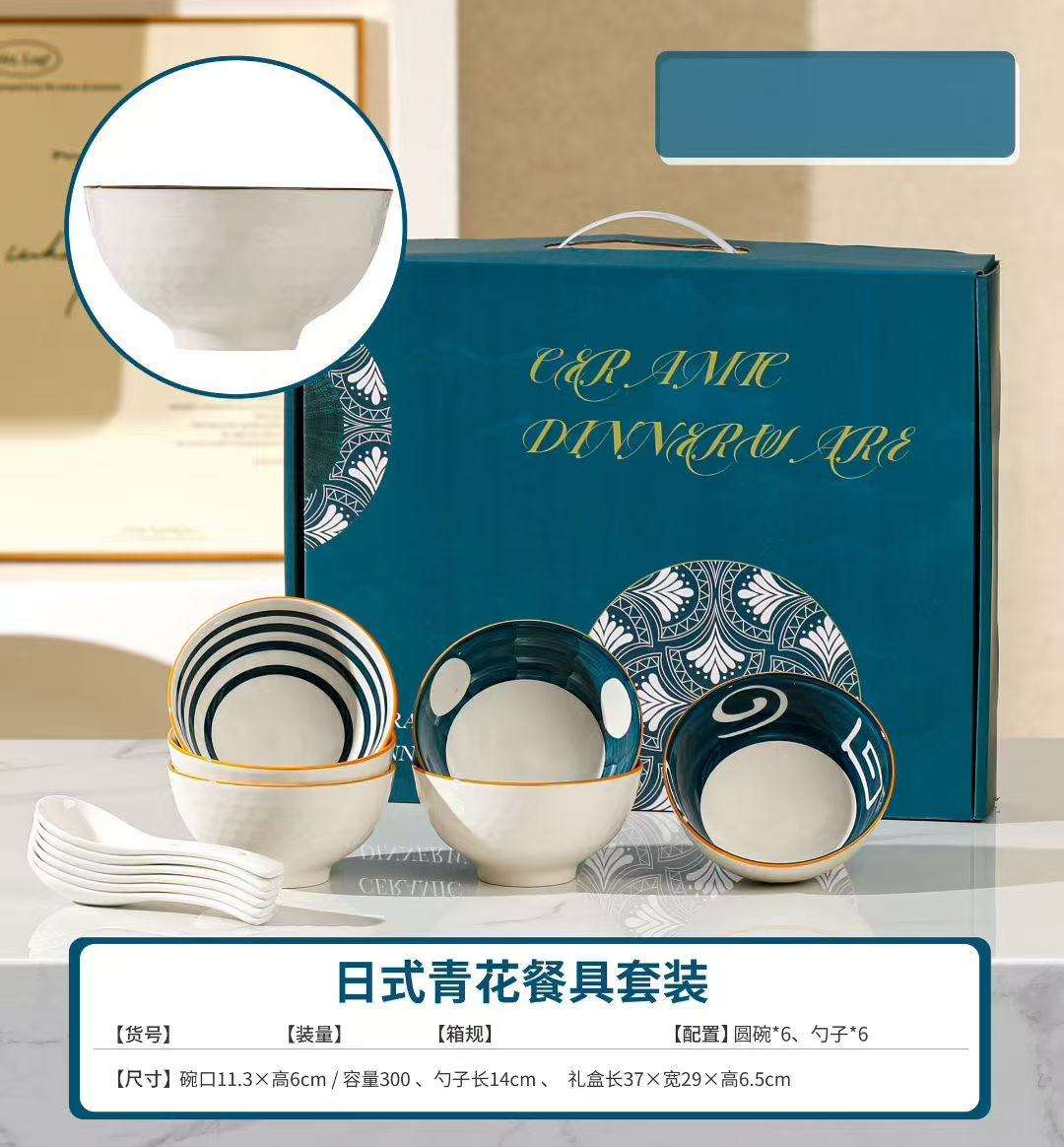 Jingdezhen Ceramic Bowl with Blue and White Flower Pattern Gift Set of Tableware, Coffee Set, Cartoon Gift Set with 4 Bowls