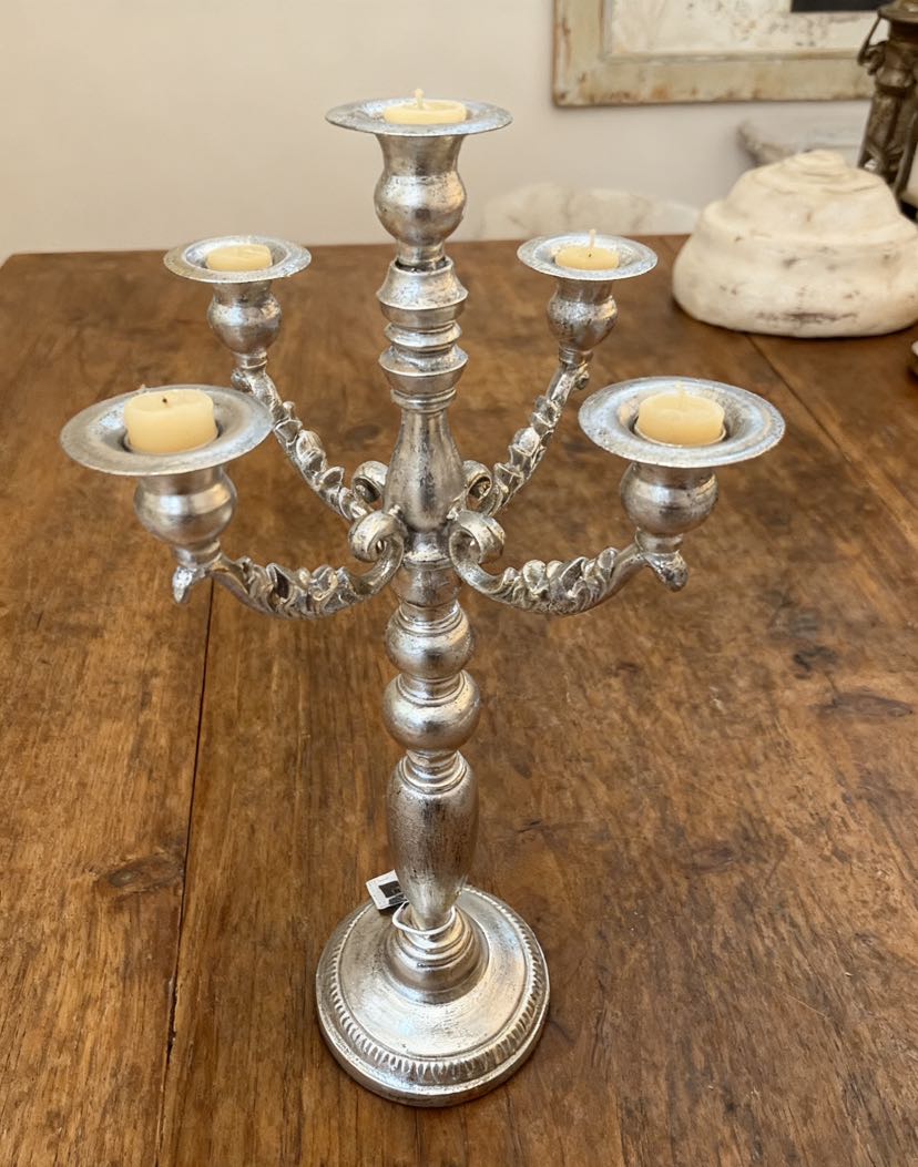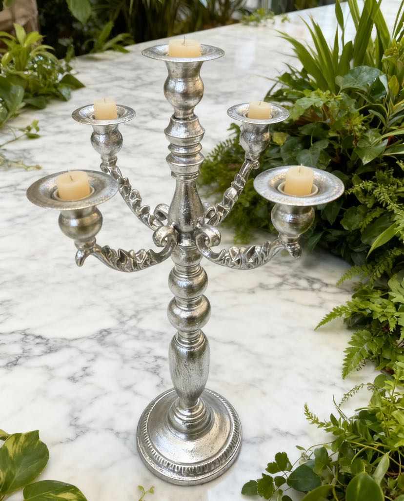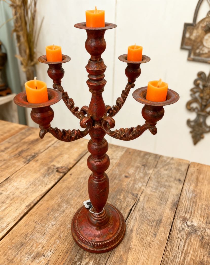 Product Name: Vintage Iron Art Candelabra with Five Heads - Luxurious Decoration Ornament with Antique Distressed Style
