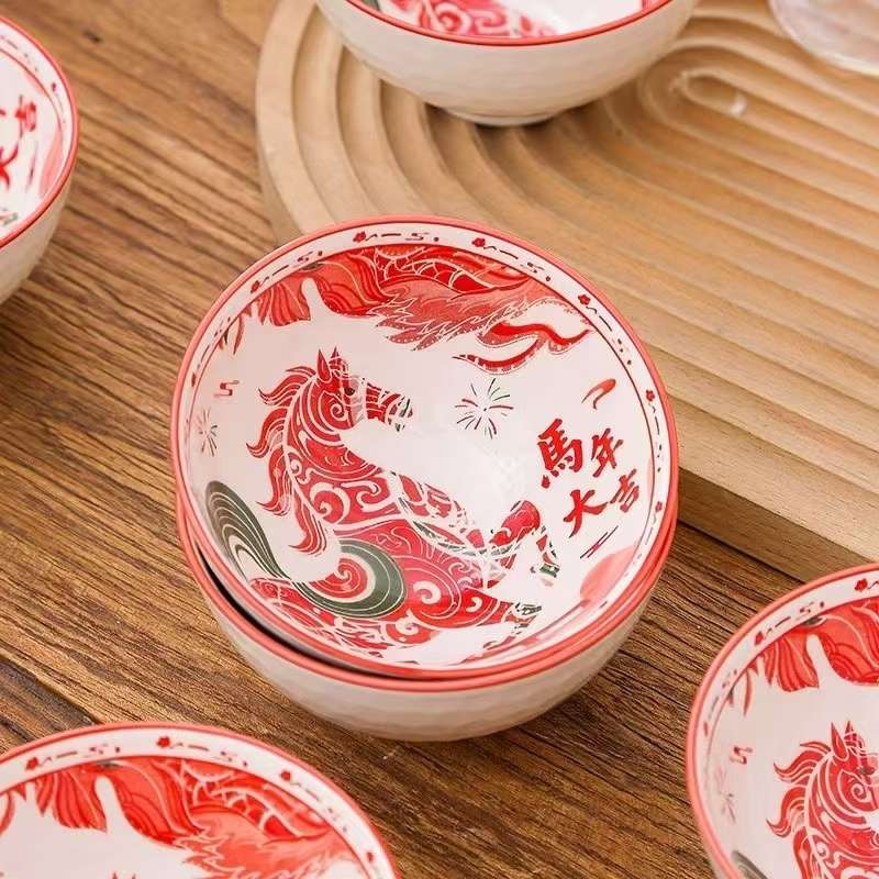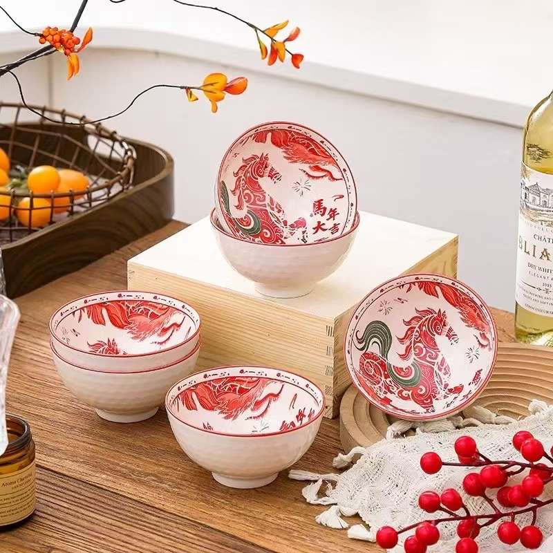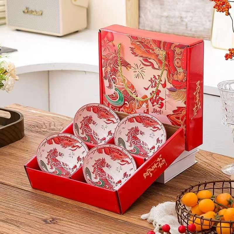 Jingdezhen Ceramic Bowl with Christmas Pattern Gift Set for Coffee, Toast, and Tea, Cartoon Gift Set with 4 Bowls