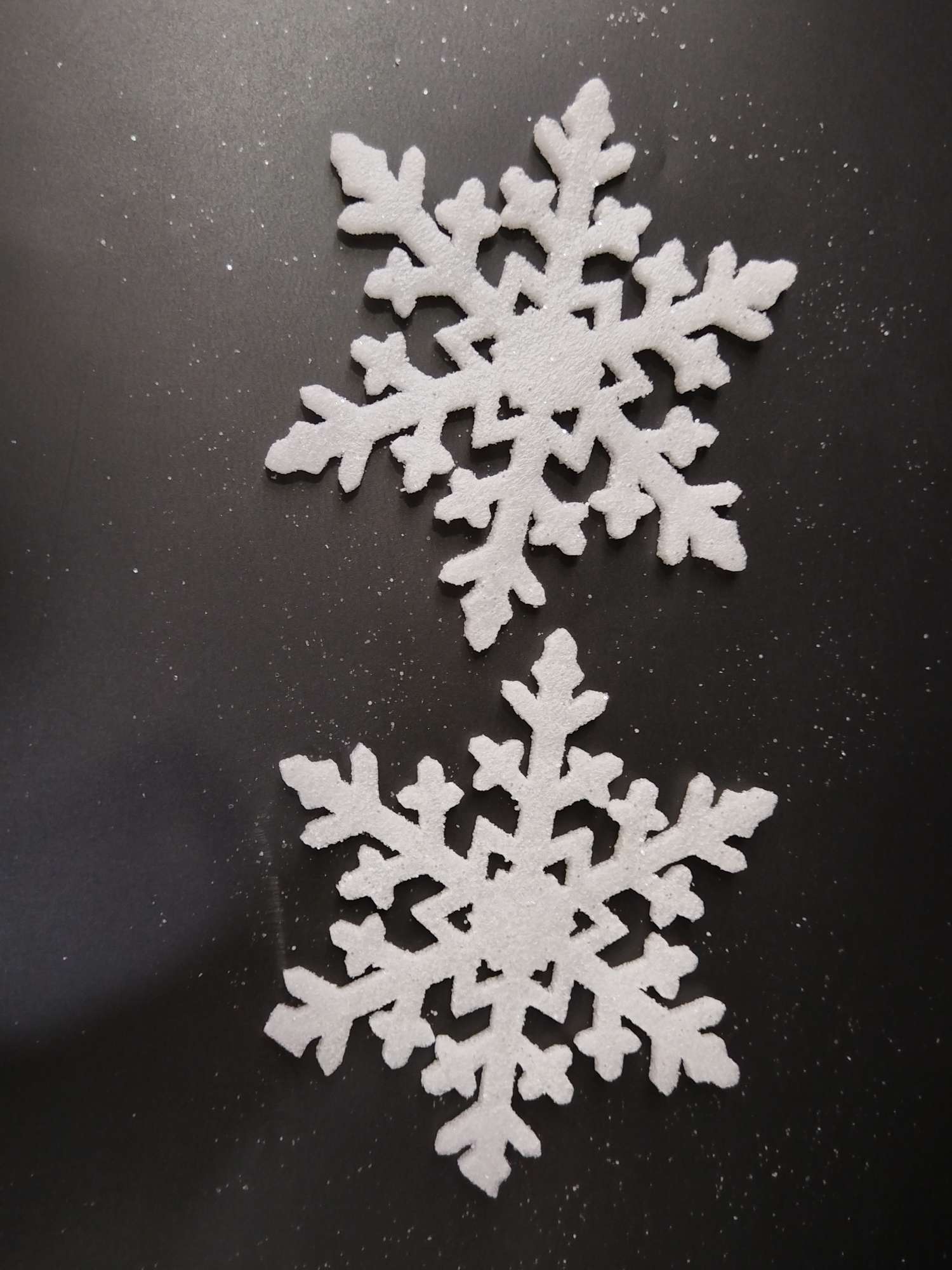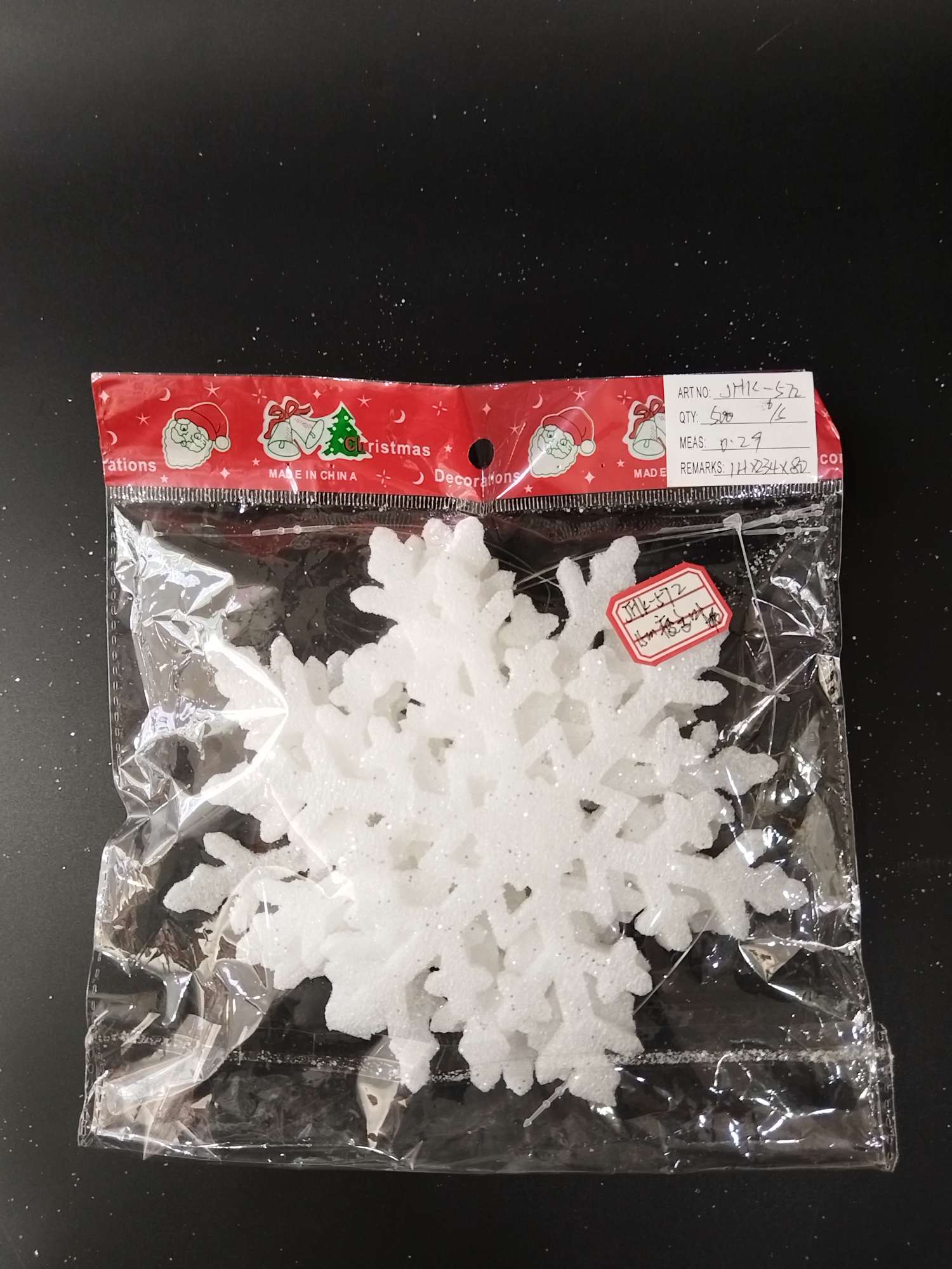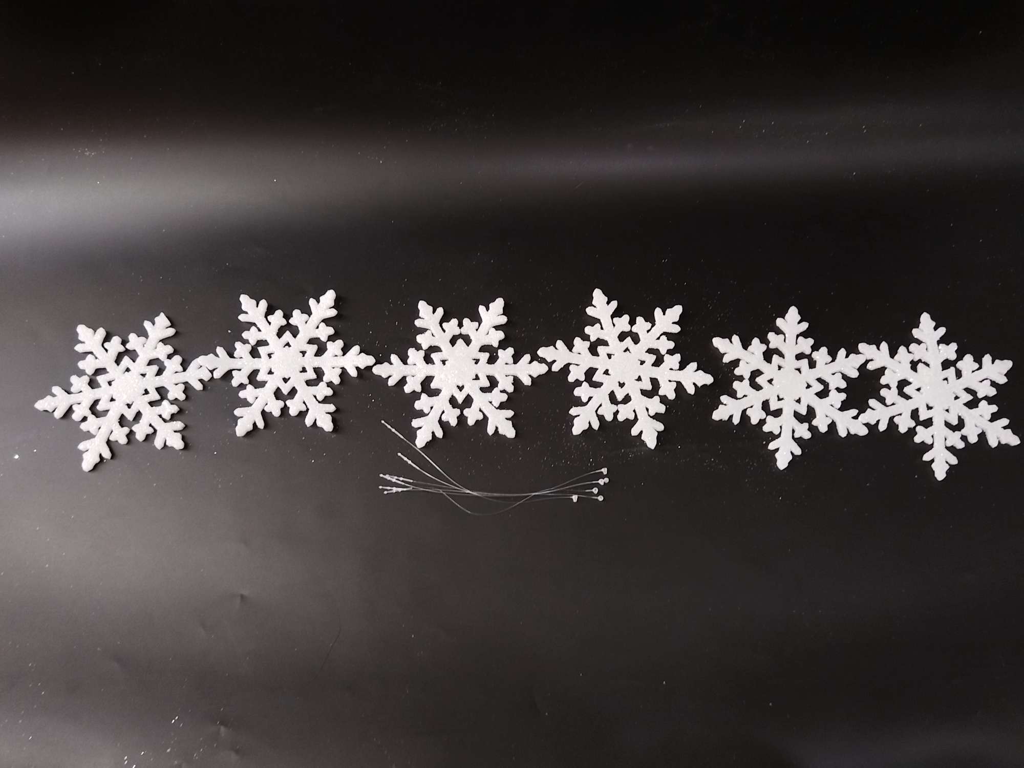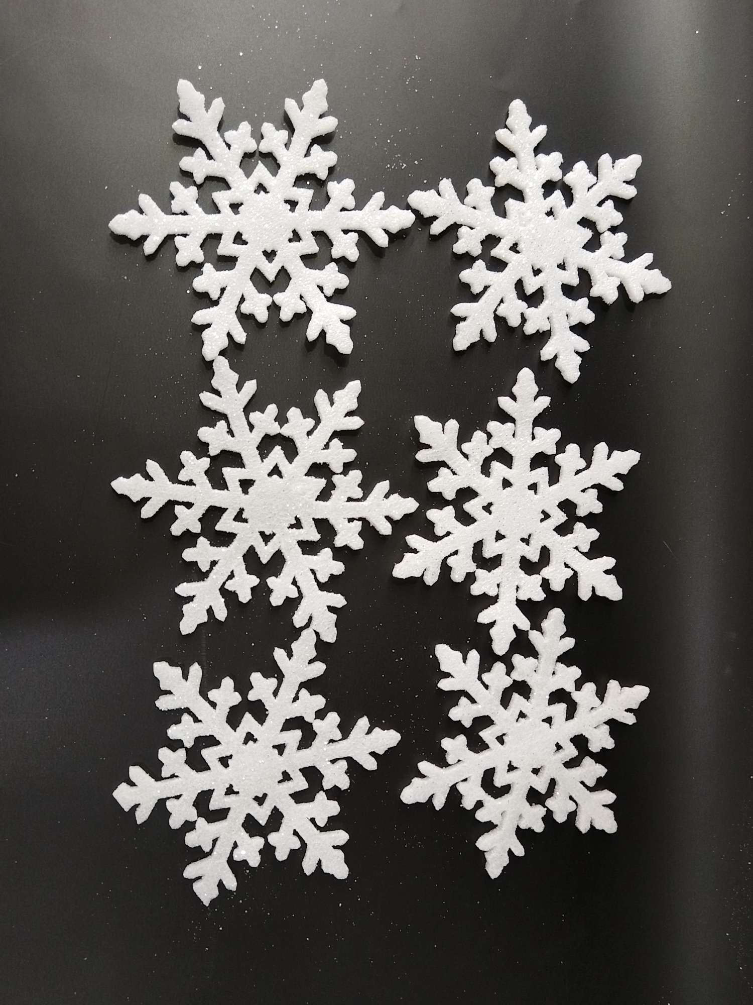 Christmas decorations, Christmas tree snowflake ornaments, plastic snowflakes, foam snowflakes.