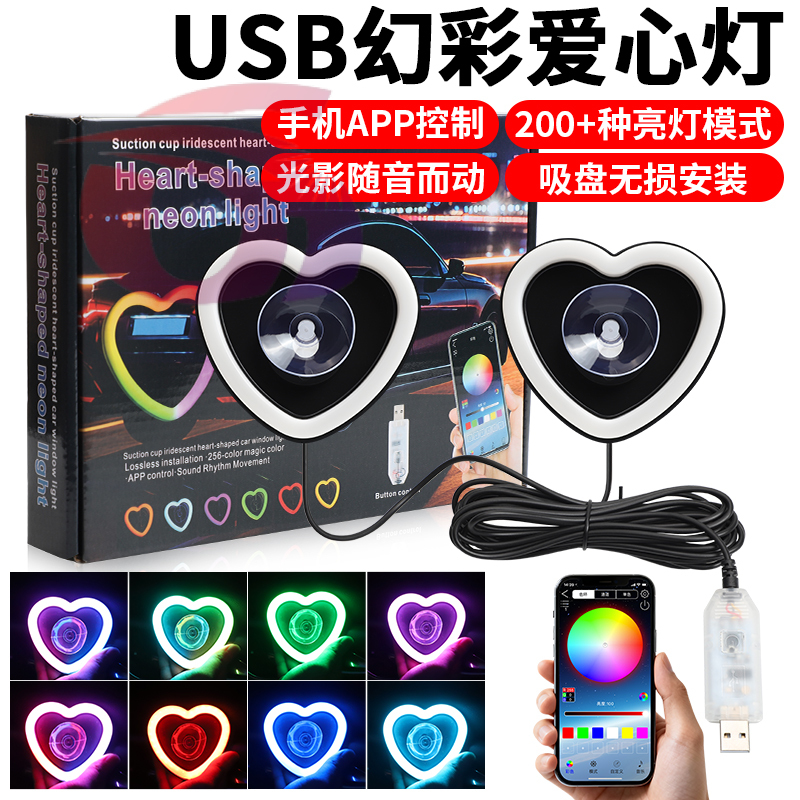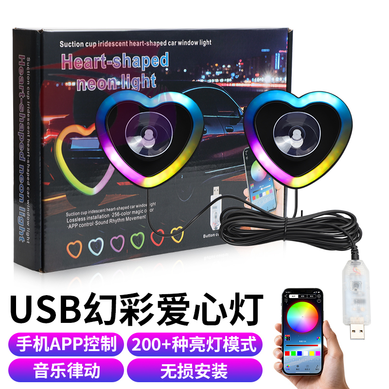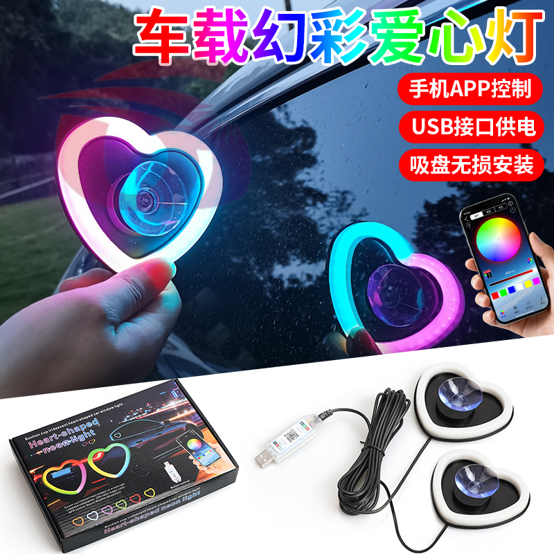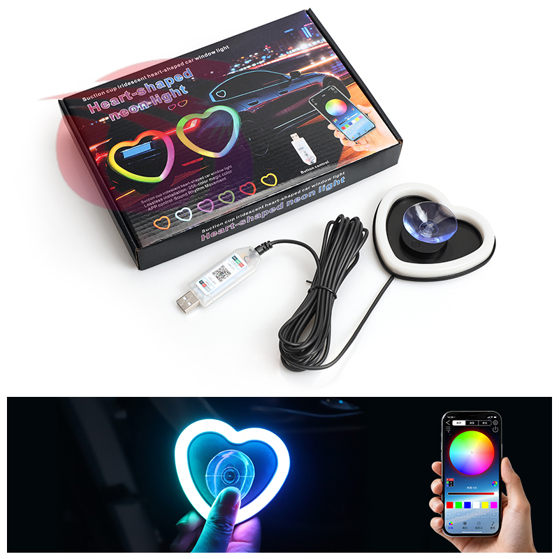 cross-border new arrival car led window light love neon tube colorful rgb luminous app atmosphere light modification 中文版