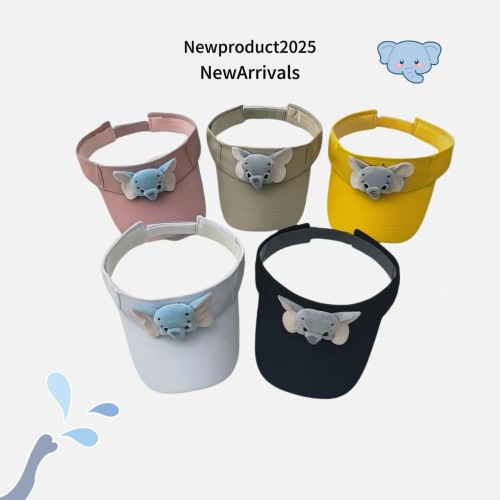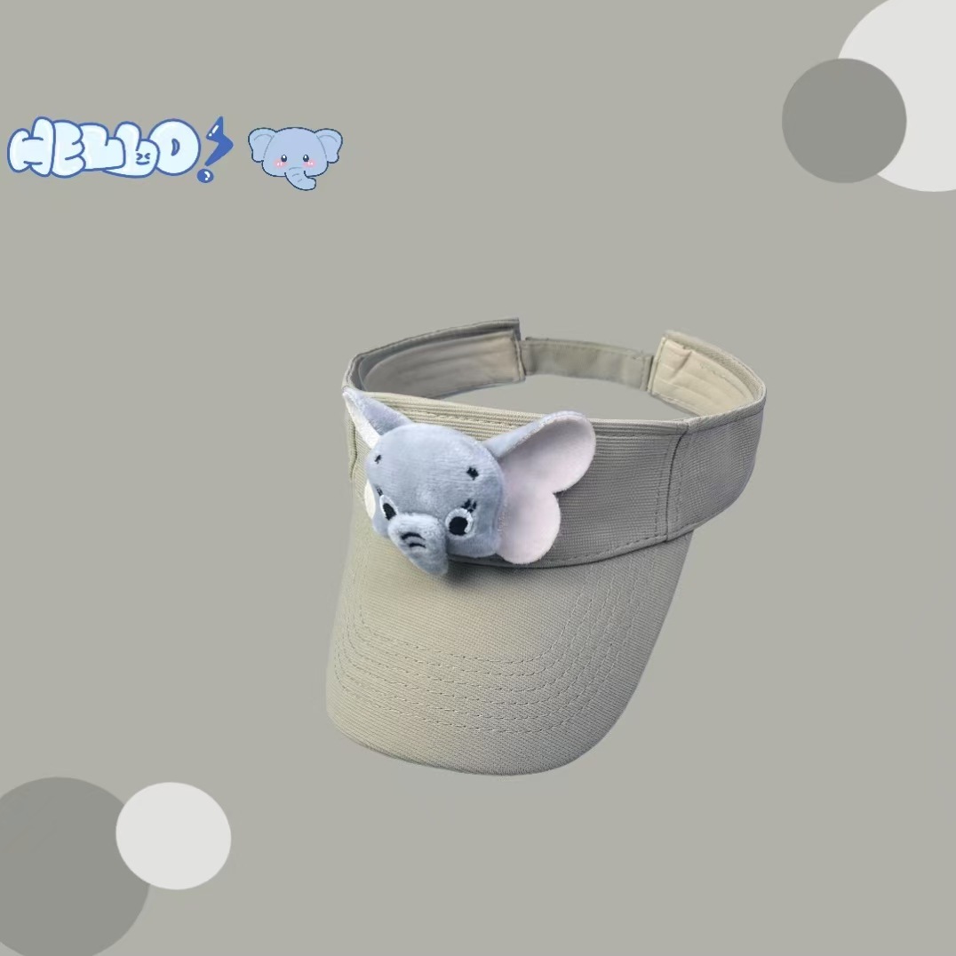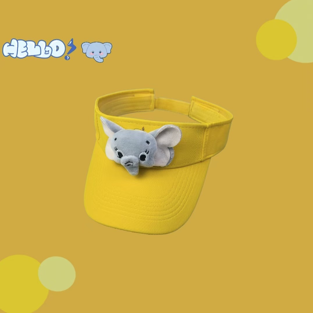 cute cartoon elephant visor cap parent-child 2025 new summer outdoor sun-shade sun protection headless peaked cap 中文版
