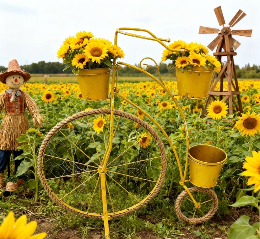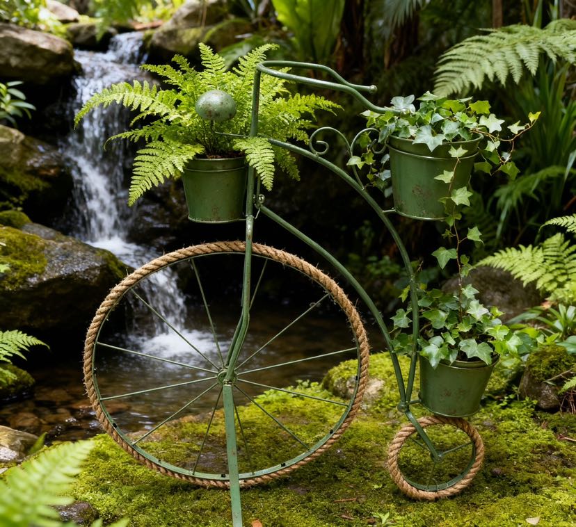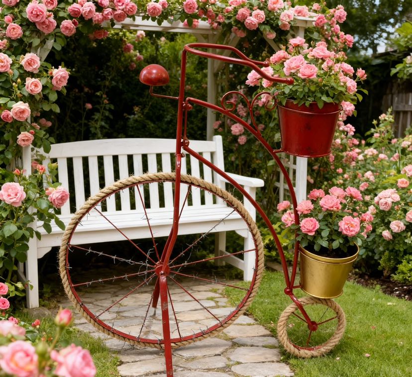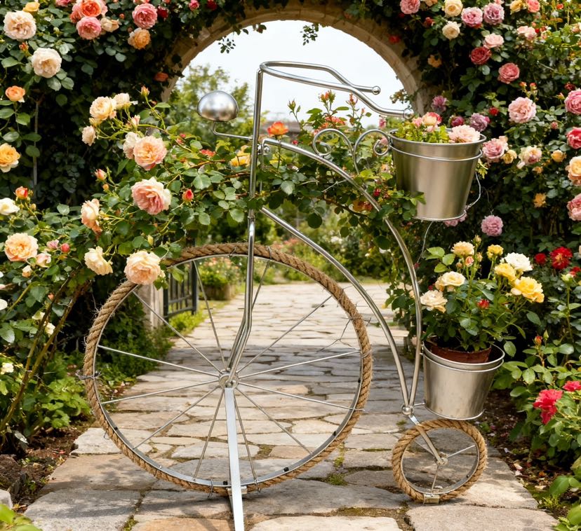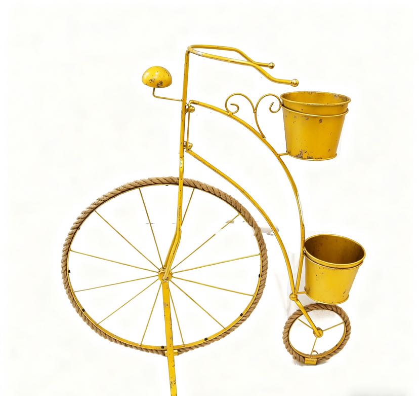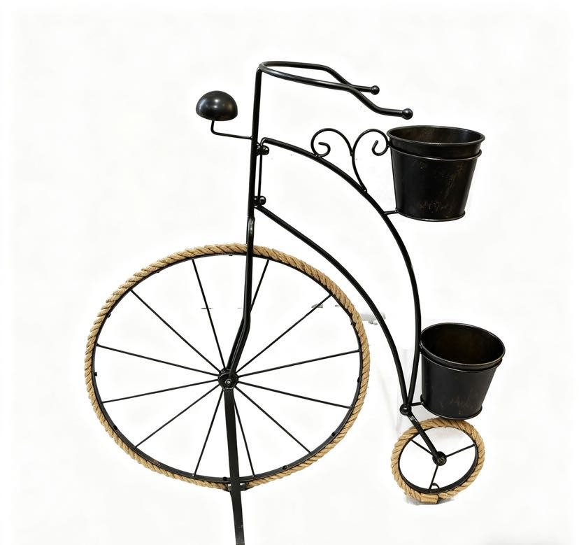 • Retro looks: The retro-style bicycle shape with aged ironcraft, the hemp rope wheels add a nostalgic atmosphere, and the colorful colors match different decorating styles.