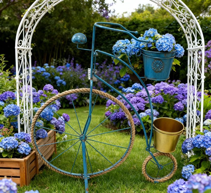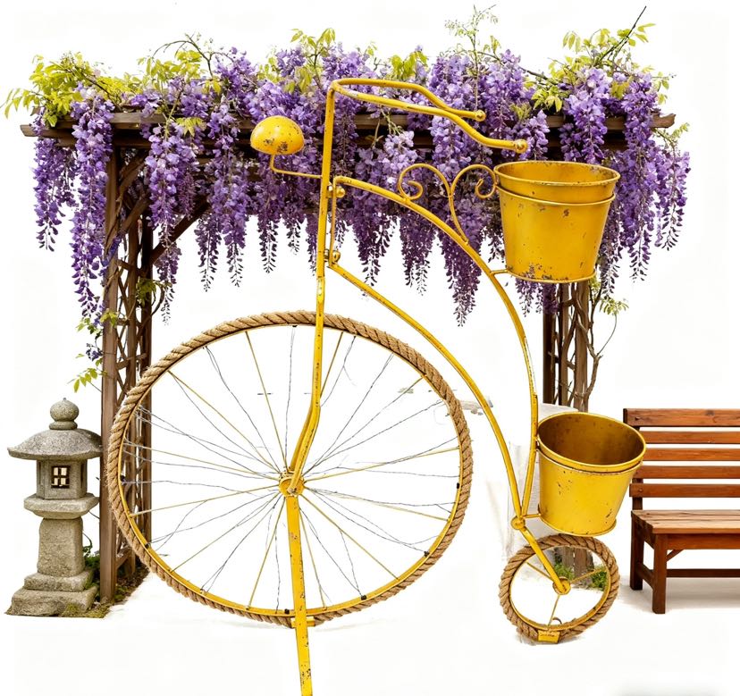 Bring the 'retro bicycle' into the garden! The iron art with aged color bicycle flower stand, the wheel covered with hemp rope to restore the retro texture, the dual pot design can place the succulents, small bouquets at the same time, placed in any place is the eye-catching C position in the garden~