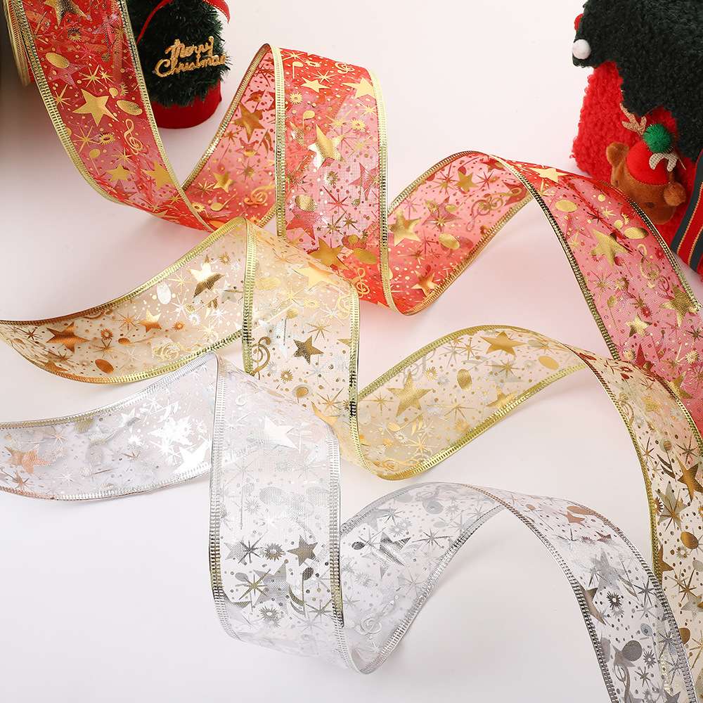 christmas gilding ribbon holiday gift ribbon new year gift packaging decal decoration ribbon size 5 中文版