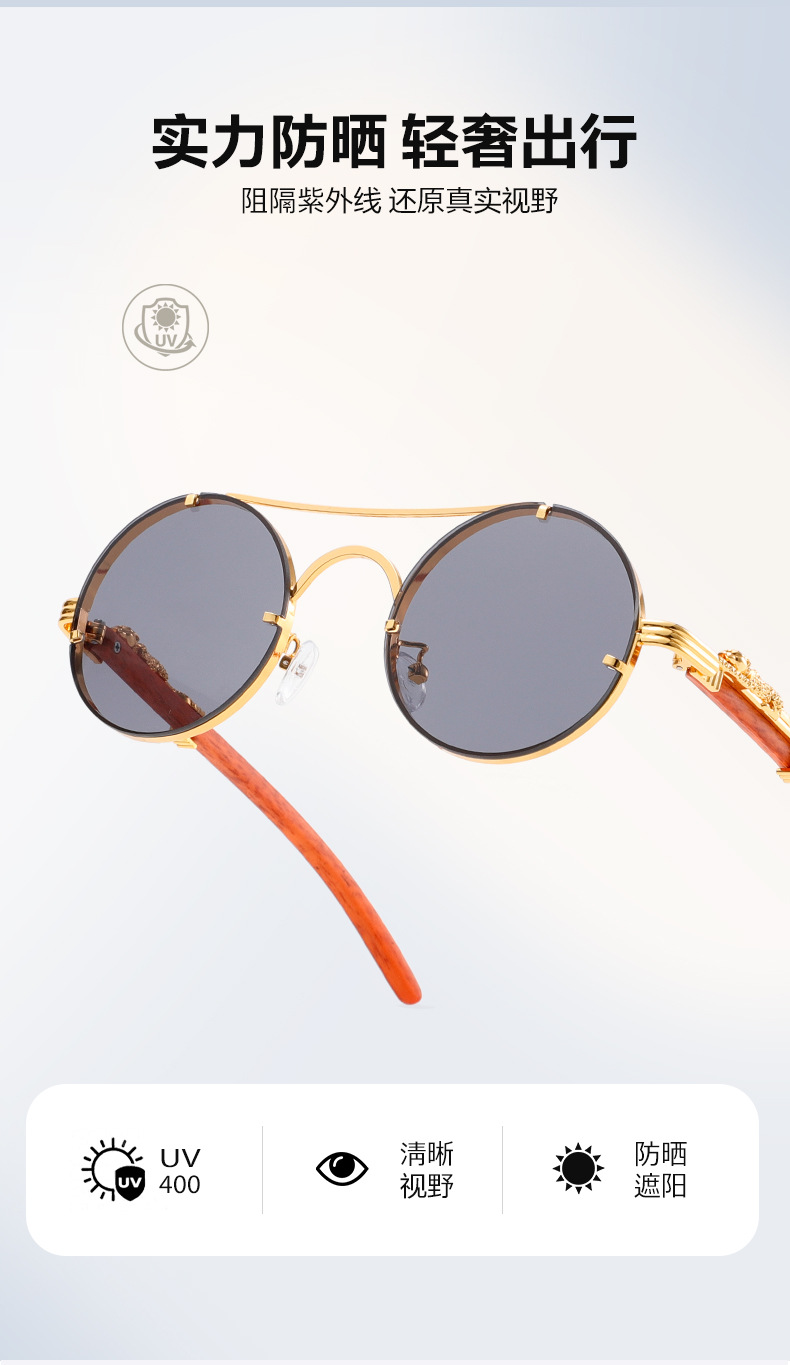 gold frame black and grey lens
