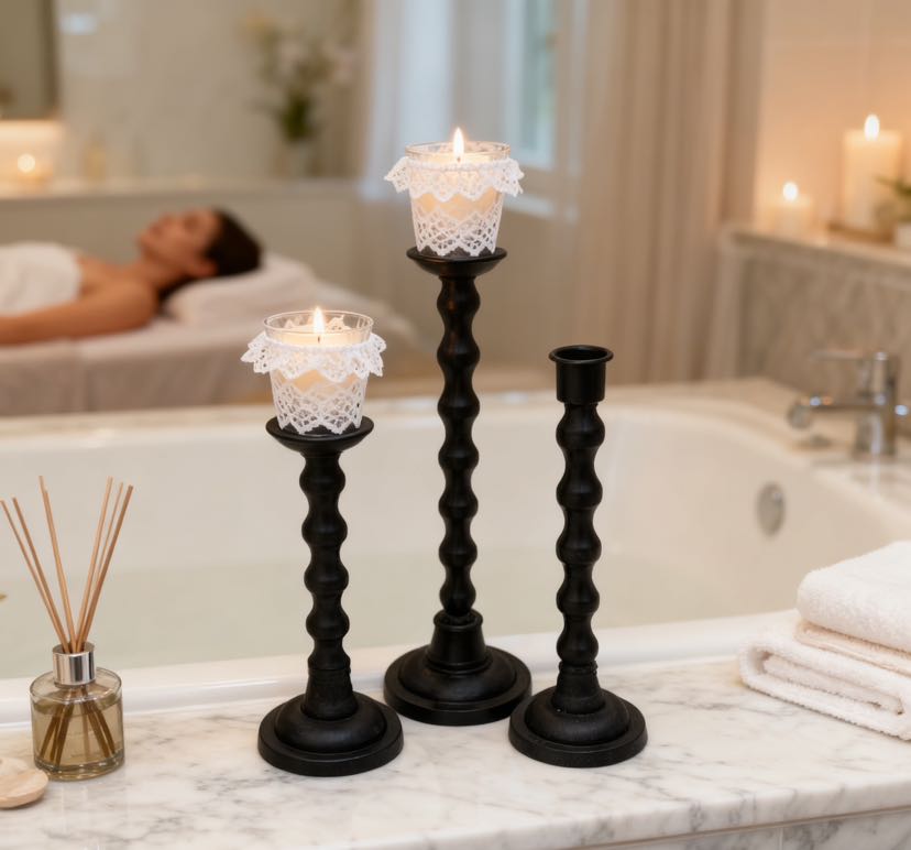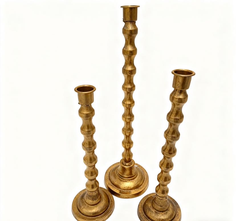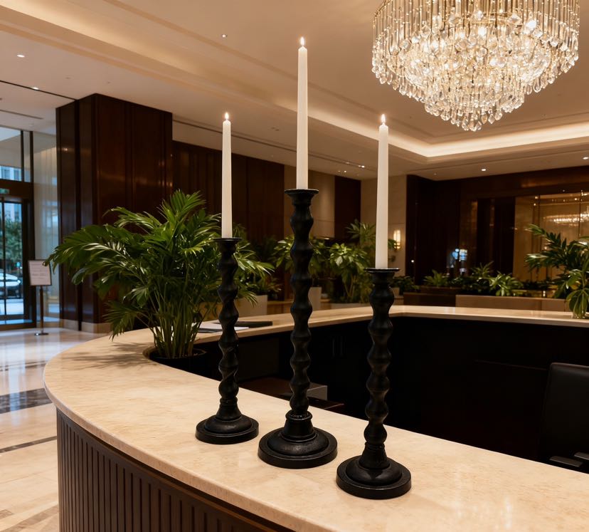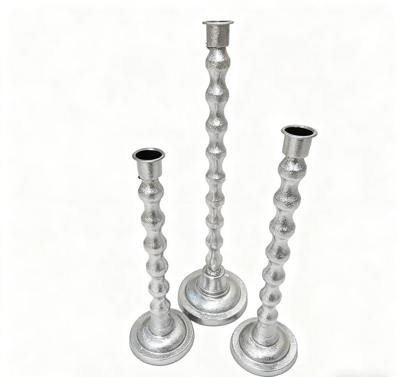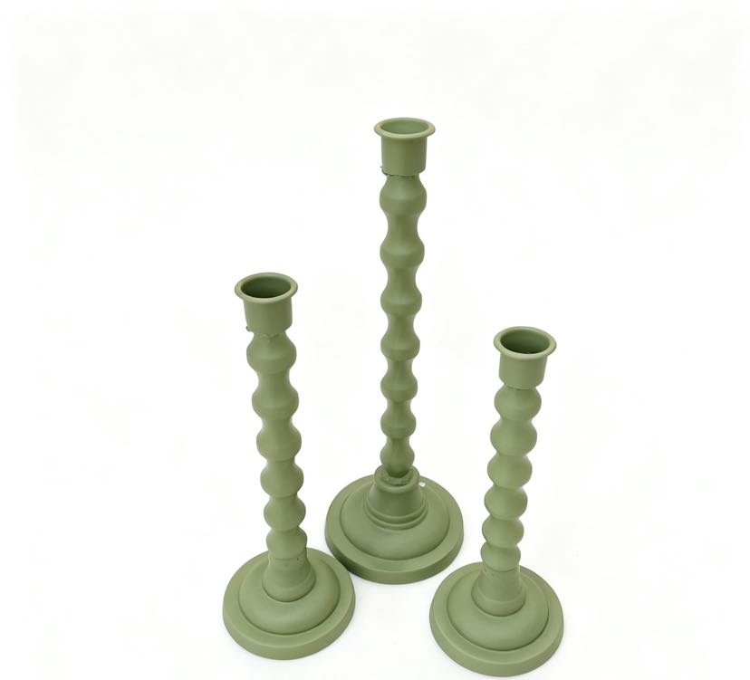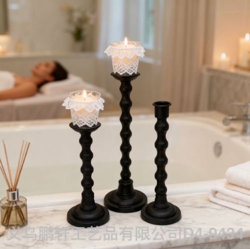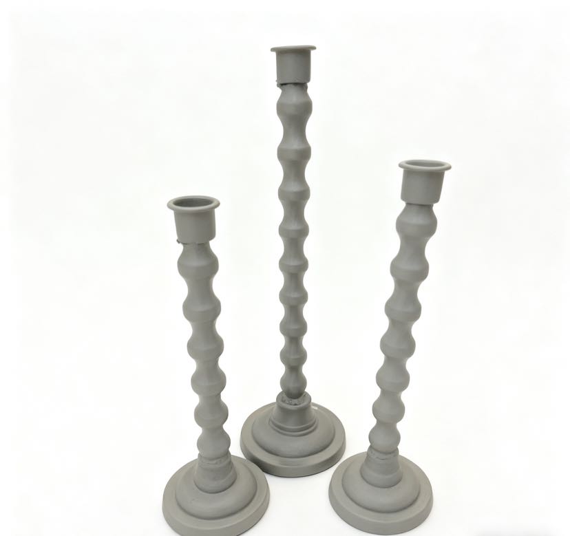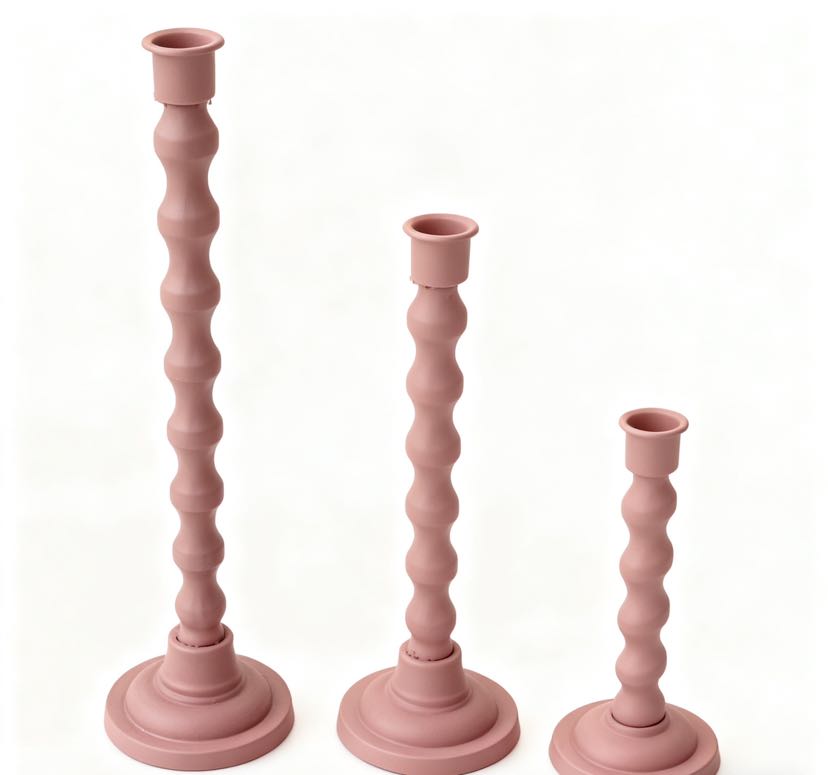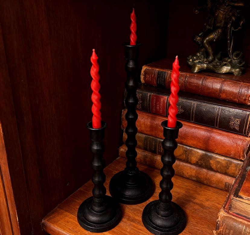 The retro-themed cast iron candle holder set of three! Wave-patterned columns with matte texture, 28/30/38cm height combinations, placing candles directly fills the atmosphere, both a desk decoration and a ritual tool for sense of ceremony~