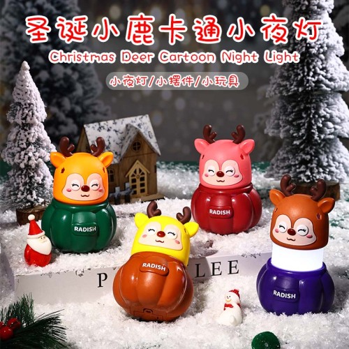 Christmas deer night light with a retractable switch design, a relaxing stress-relieving toy, specially designed for adults. Powered by button batteries, it is portable and safe. The core selling point: soft lighting helps you fall asleep and relieves stress. A Christmas product. Advantages: durable and eco-friendly, with CE, EN71, 3C certifications. It addresses the pain points of nighttime anxiety and loneliness, bringing warmth and company. Brand commitment to quality, so you can enjoy a peaceful night every night.
