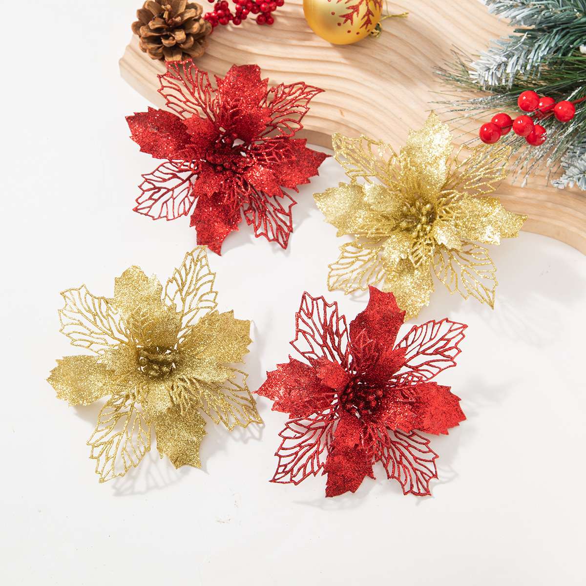 Christmas decorations, holiday decorations, Christmas flowers, lattice design, multiple colors available, Christmas tree accessories, branch decorations, wholesale.