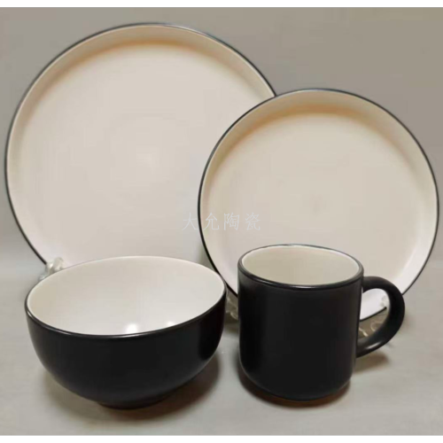 spot stock light luxury american plate cup retro black glaze bowl dish plate set of tableware 16-piece set custom 中文版