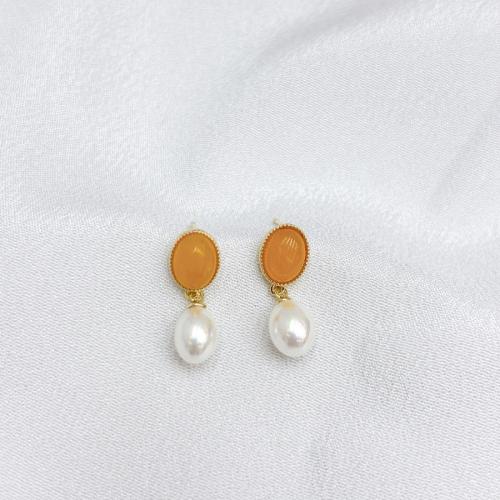 S925银针镀金天然淡水珍珠蝴蝶结耳钉女百搭王妃款新潮ins风耳环