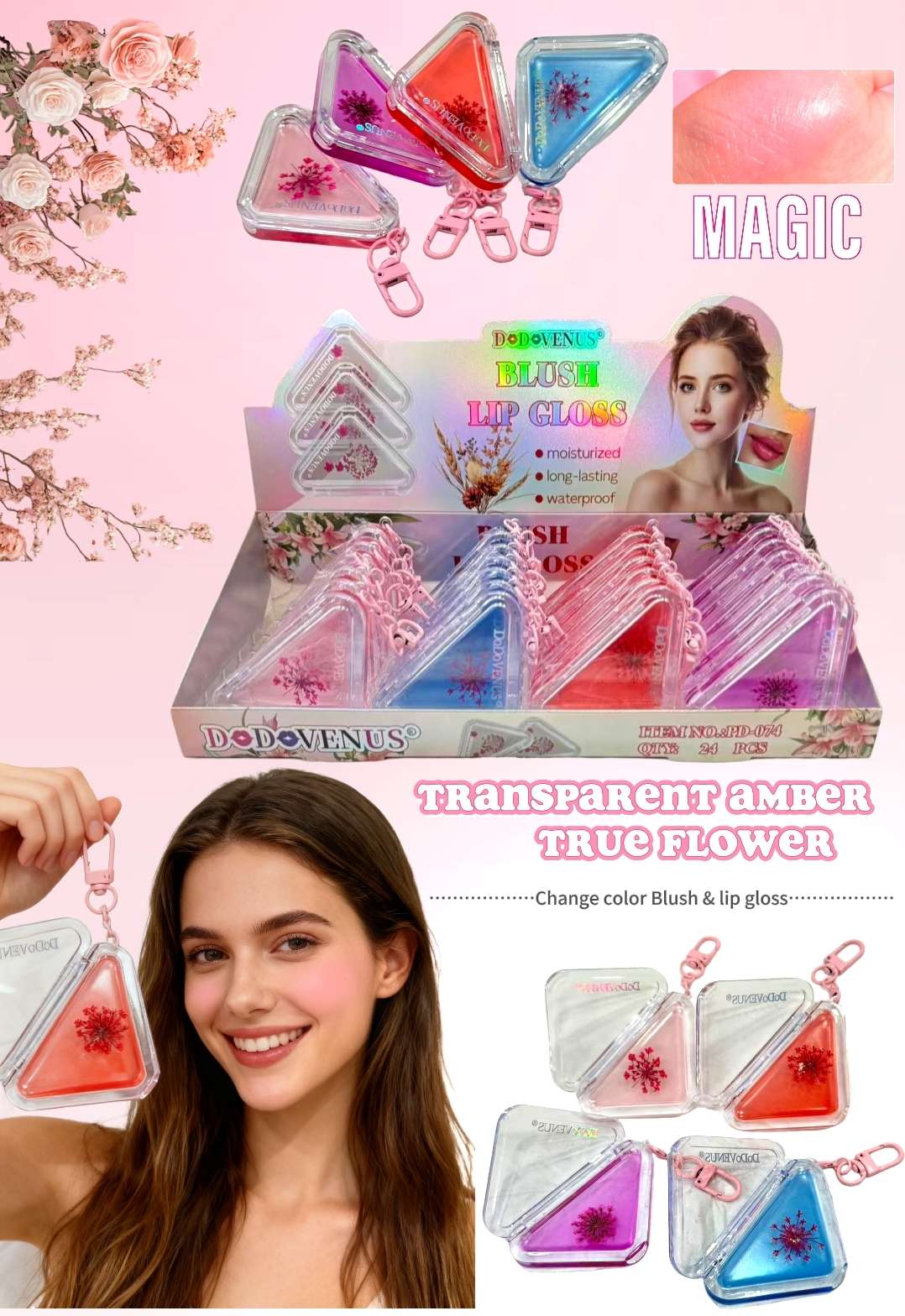acrylic color changing lip balm blush shared, easy to color, smear-proof makeup 中文版