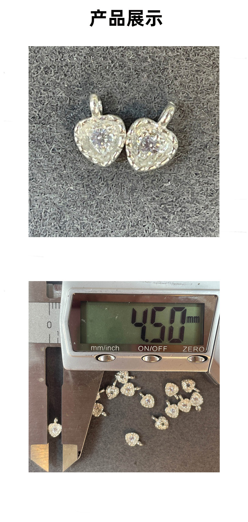 Heart-shaped solid body + full diamond setting + hanging clasp structure |