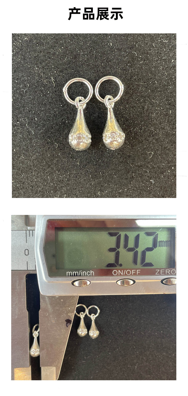 Shape and StructureThe subject is a three-dimensional model of a droplet, with a hanging ring structure at the top, which is connected conveniently and can be directly assembled to meet the needs of various jewelry assembly, combining practicality with decoration.