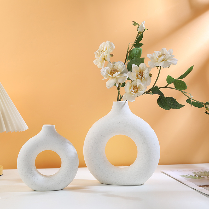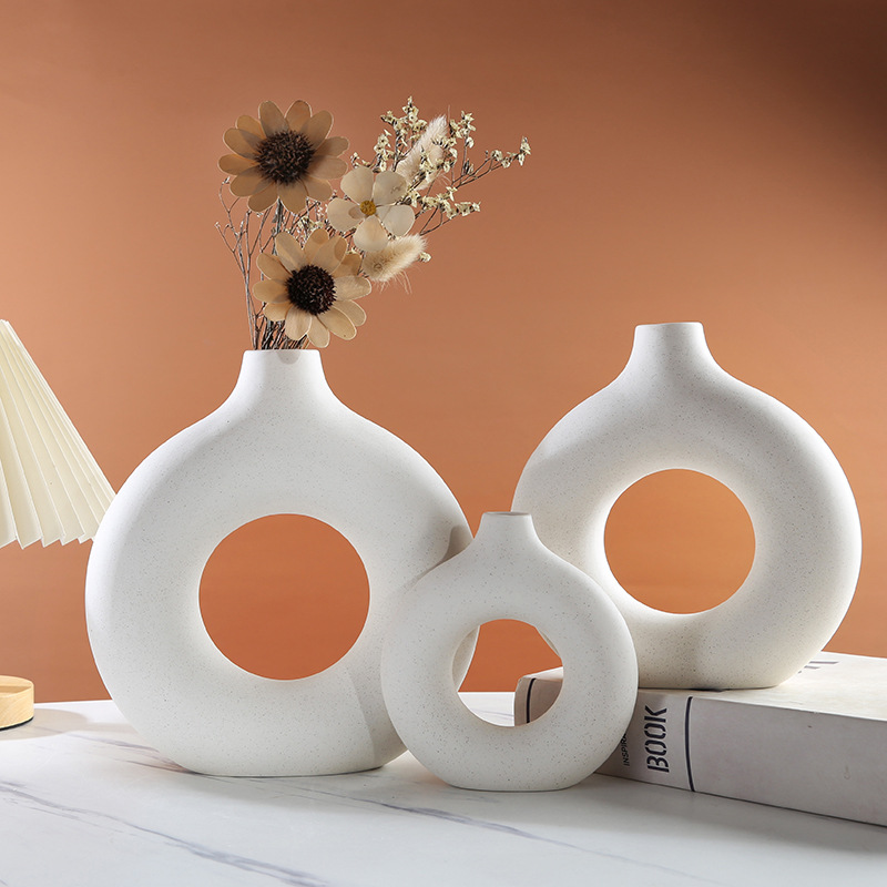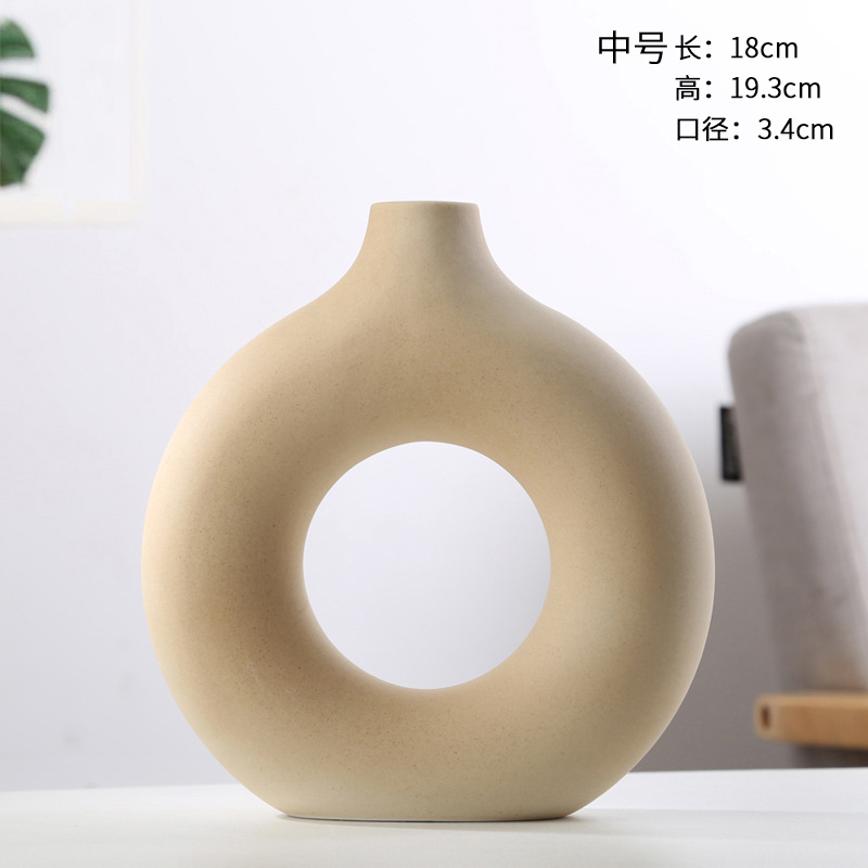 ceramic vase circle ins decoration creative crafts living room cross-border hot handmade ceramic 中文版