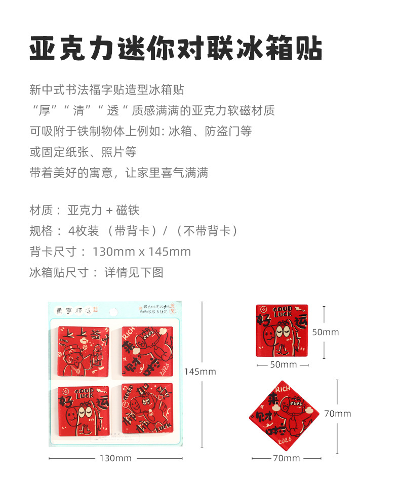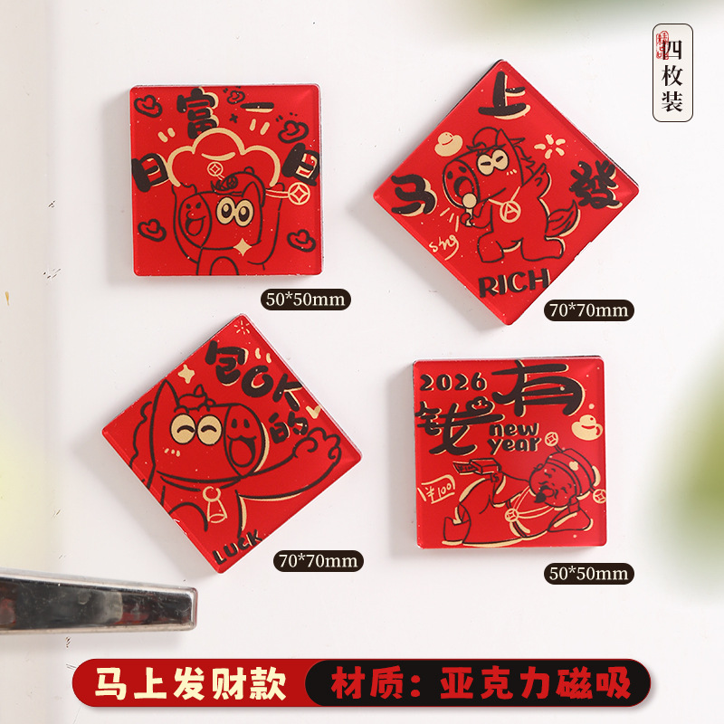 (high-grade acrylic) magnetic stickers lucky fortune wangwang couplet [4 pack] bh26c-1