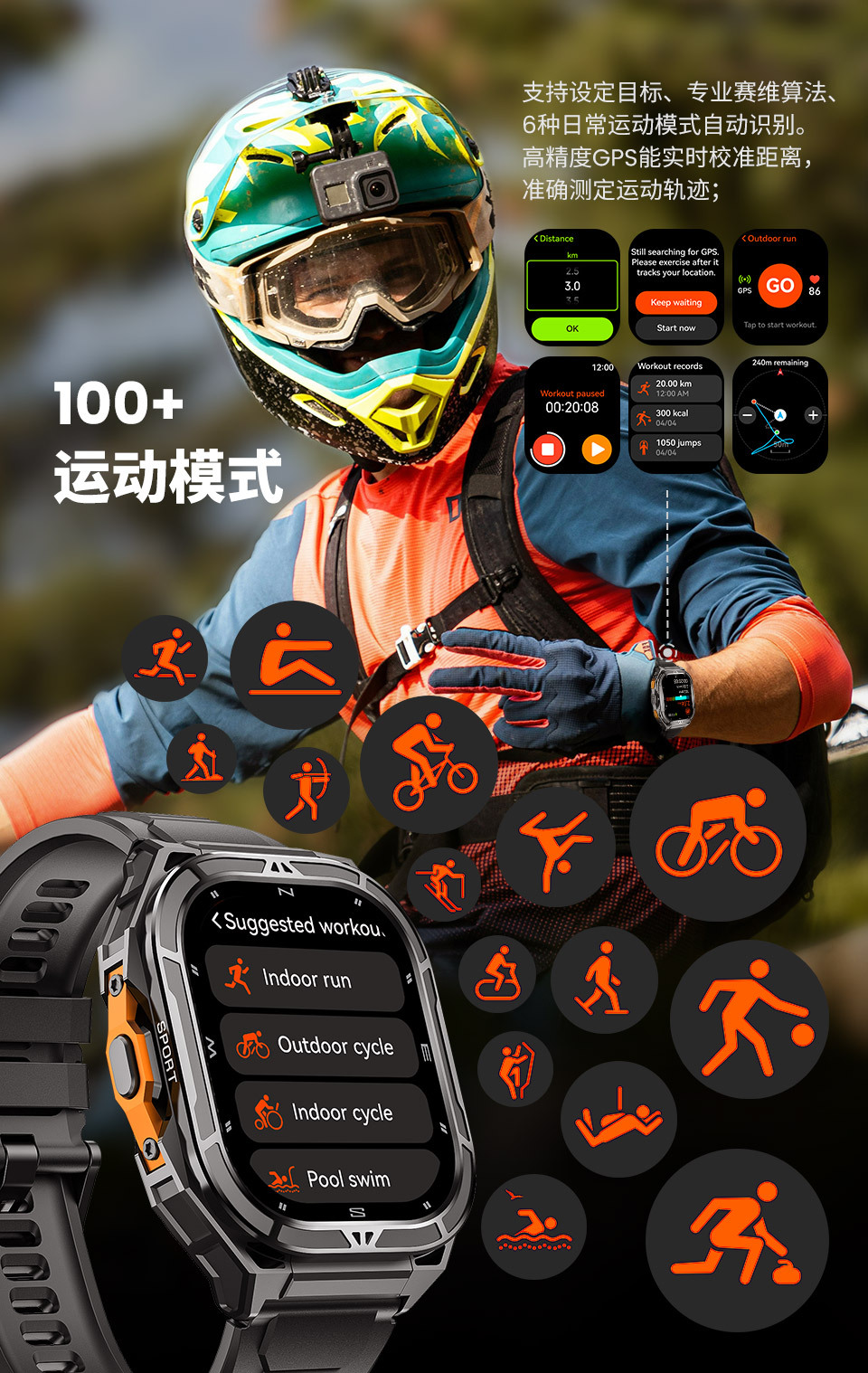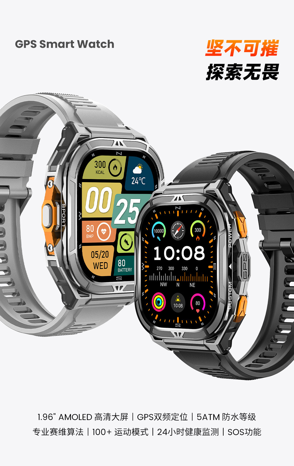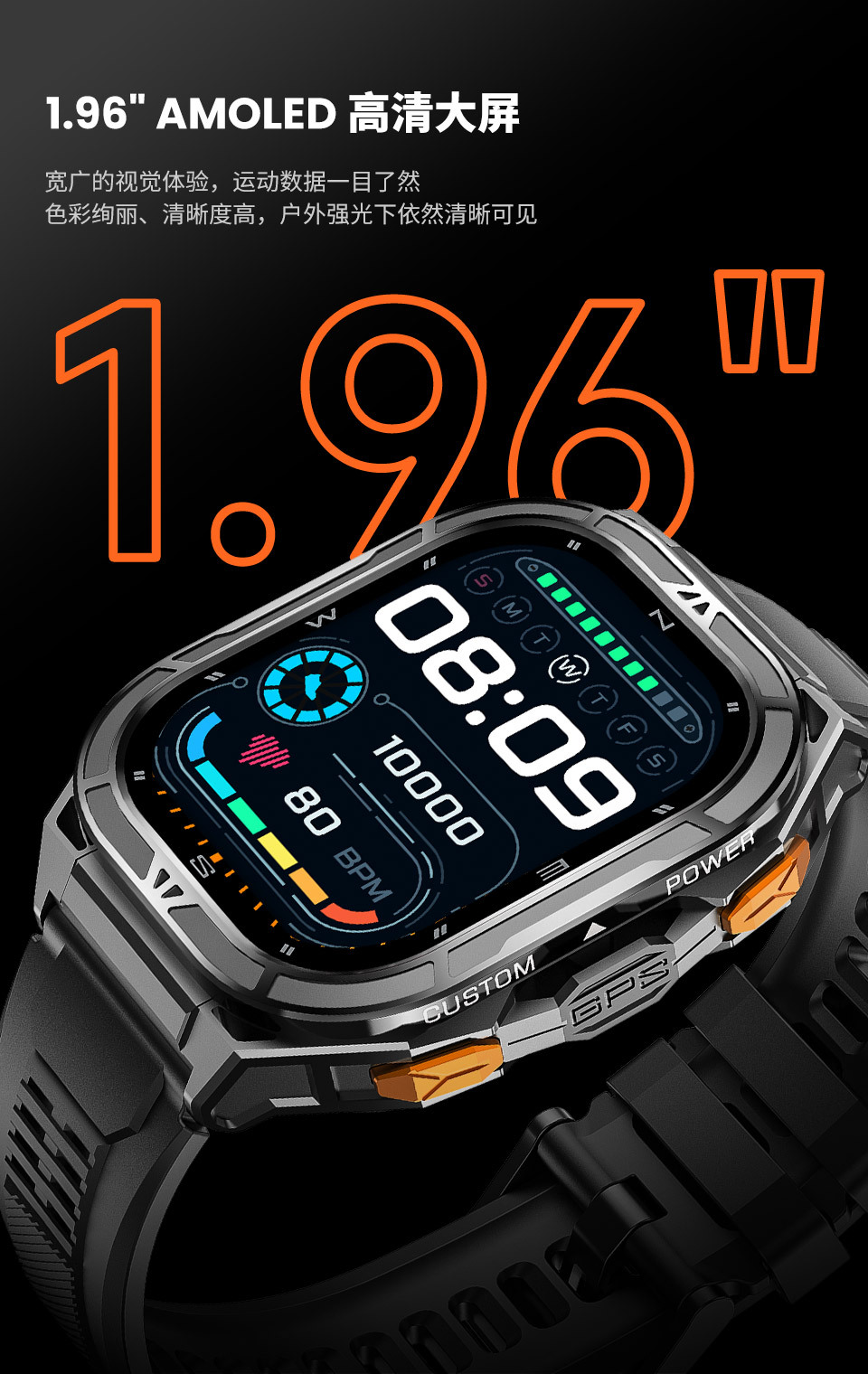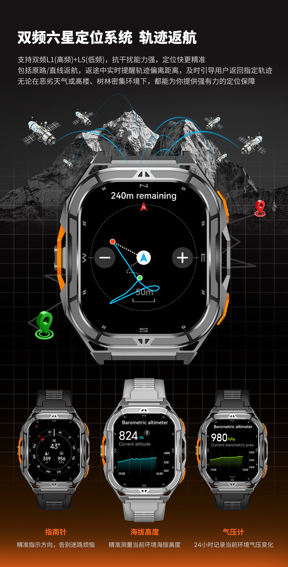 cross-border x5 smart watch bluetooth calling 1.96inch large screen gps altitude air pressure compass 5atm waterproof 中文版