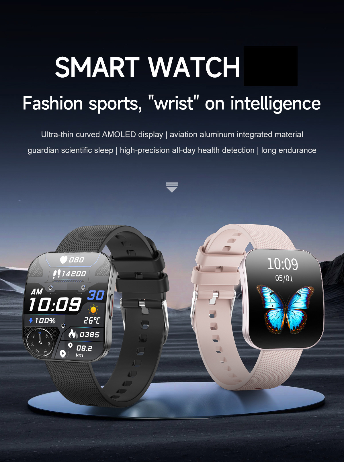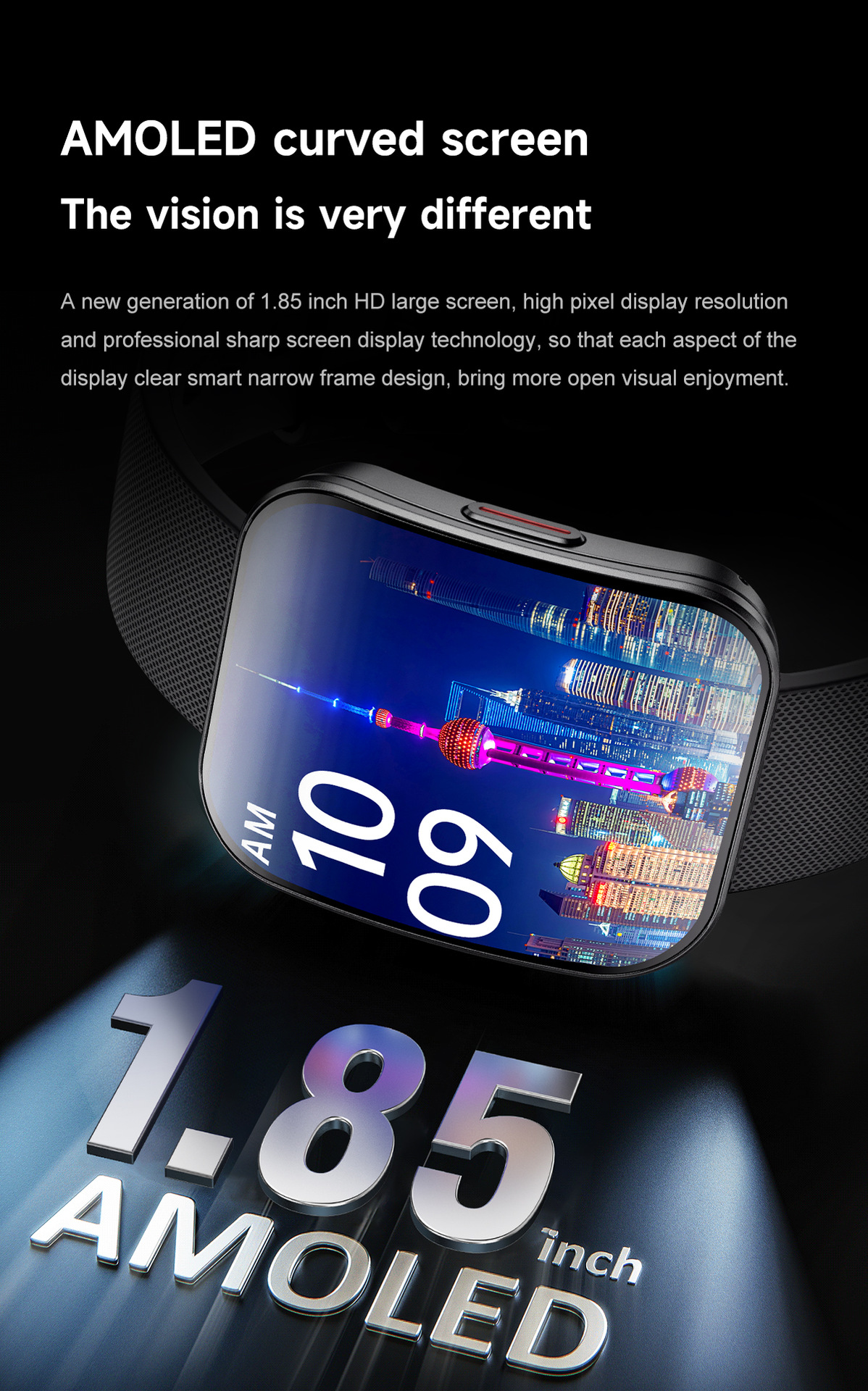 qs08 ultra-thin smart watch 1.85 curved amoled screen health body temperature monitoring ip68 waterproof smart bracelet 中文版