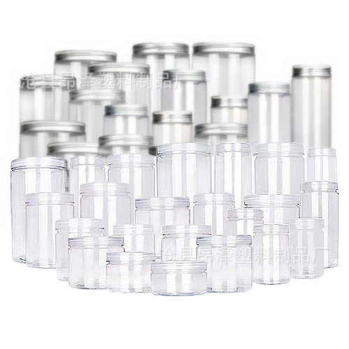 This pet transparent jar comes in various heights and capacities for the 55mm diameter series, 65mm diameter series, 85mm diameter series, and 100mm diameter series. Additionally, there are square bamboo-pattern bottles available.
