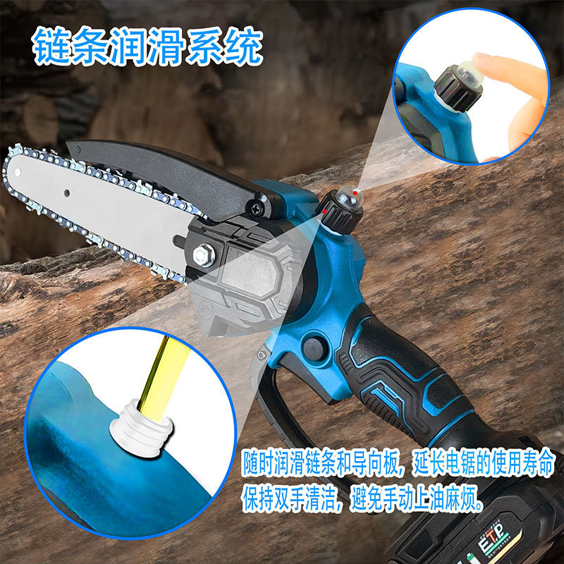 6-inch 8-inch brushless lithium battery electric chain saw household high-power handheld rechargeable lithium electric saw single hand wood cutting saw mini 中文版