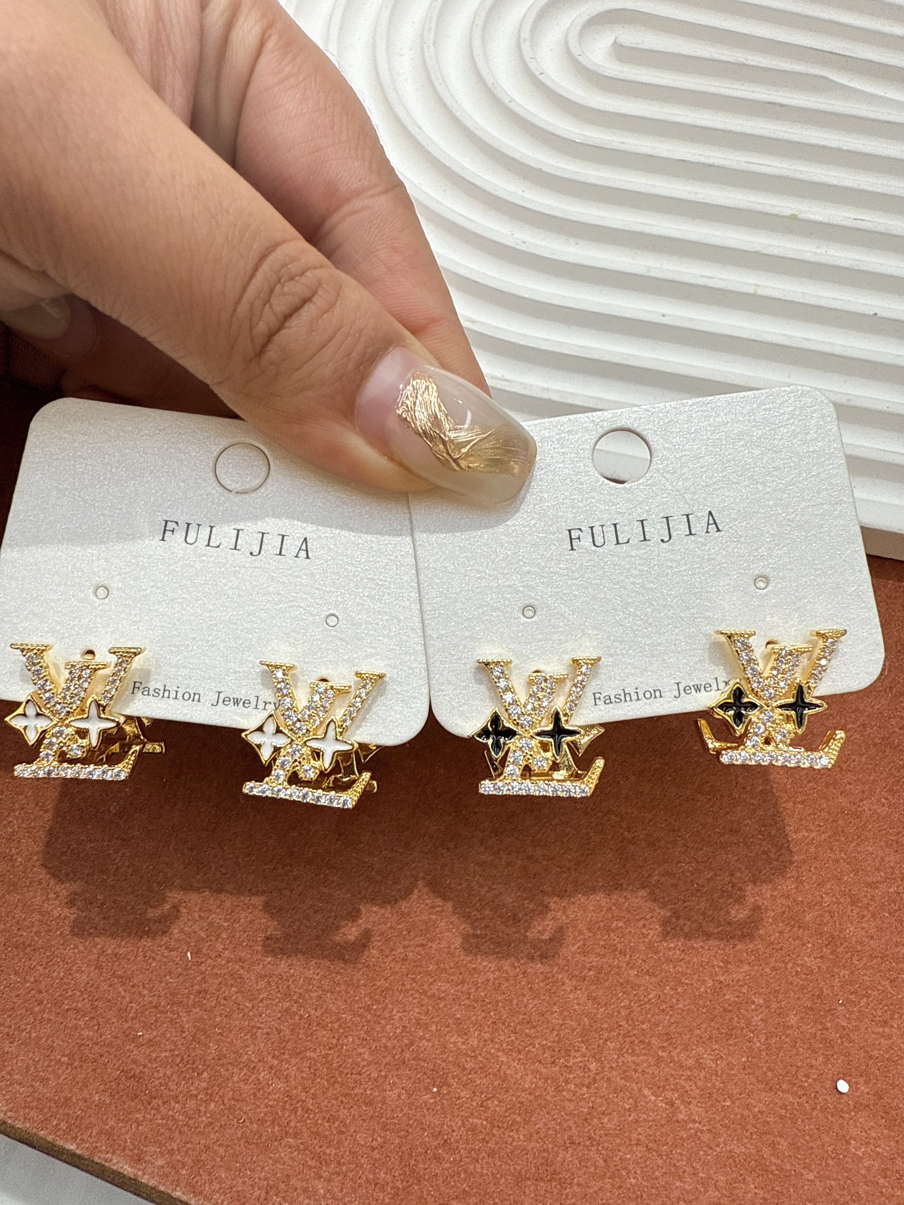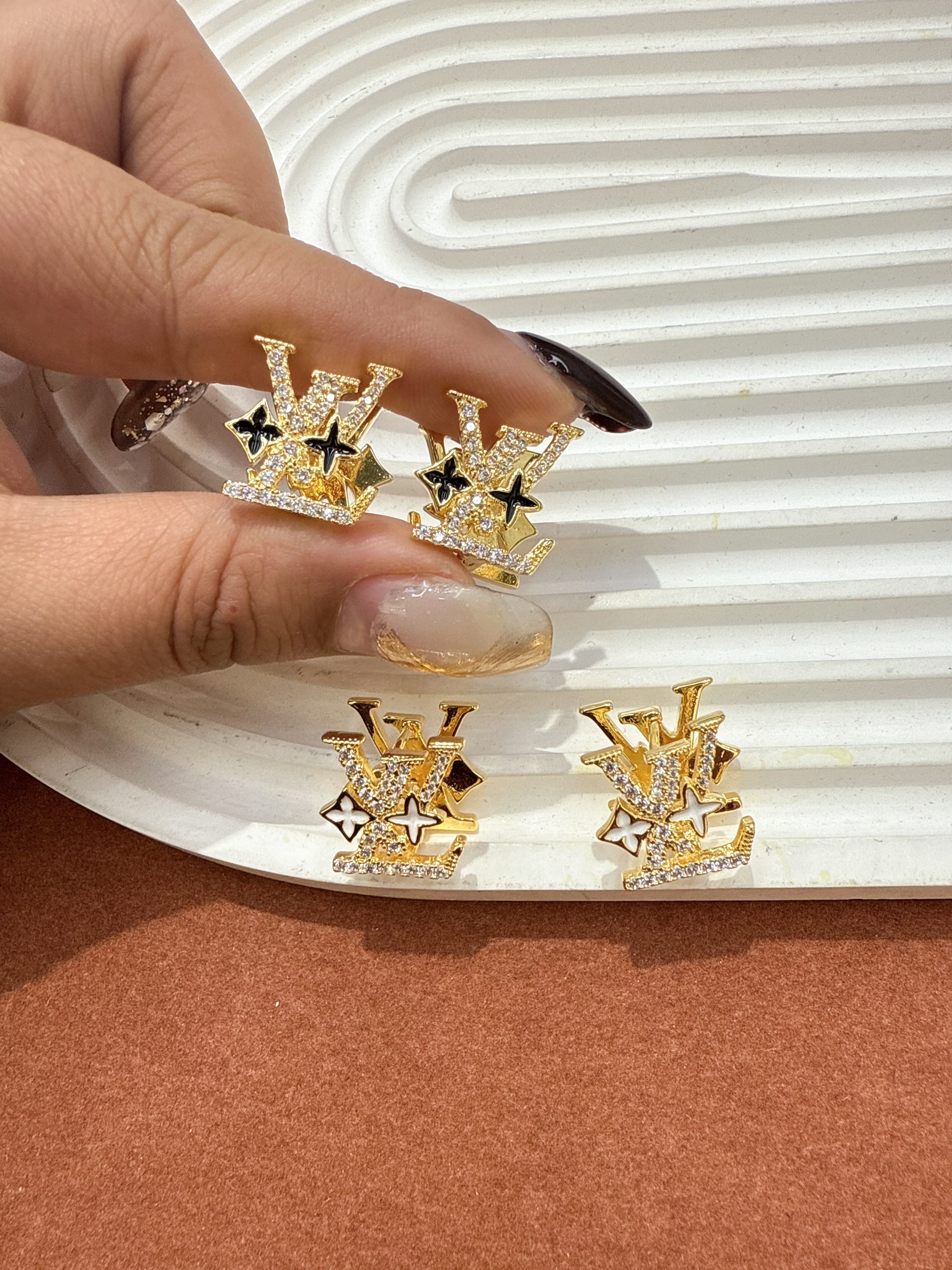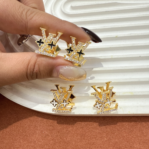 European and American fashion, light luxury jewelry V family letter set diamond earrings, retro temperament, high-level earring feeling ear ornament for women